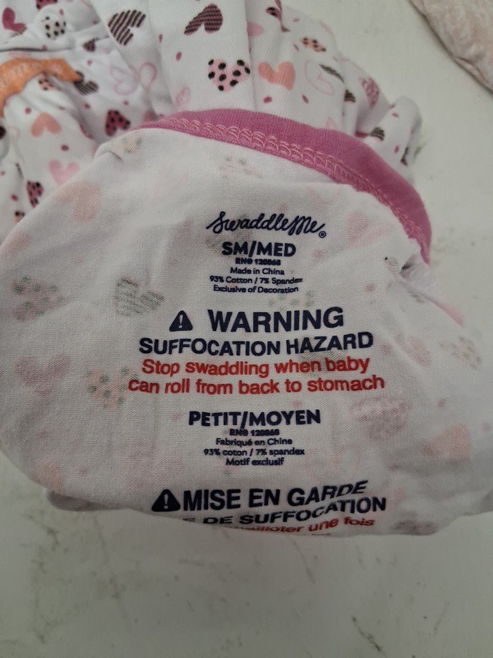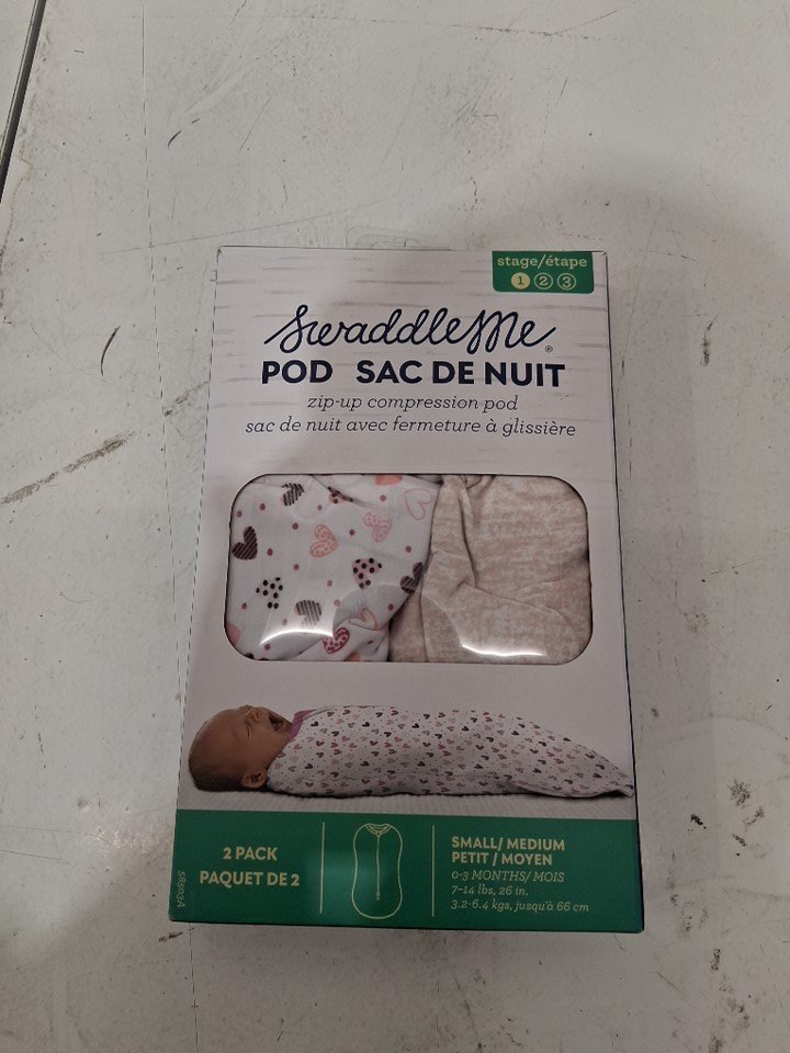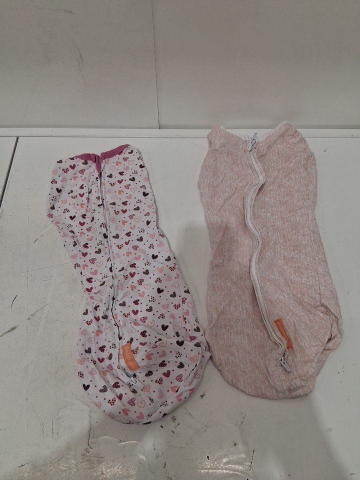 2pk SwaddleMe zip up compression pod - SMALL/MEDIUM (0-3 MONTHS) - PINK/WHITE HEARTS