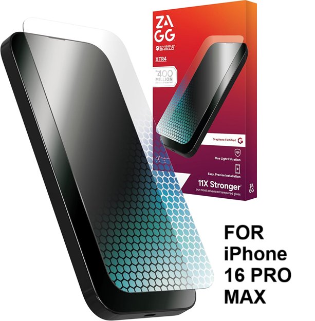 ZAGG XTR4 Screen Protector with blue light filtration for iPhone 16 Pro Max - 8.54" x 4.64" - glossy (model:‎200114881)