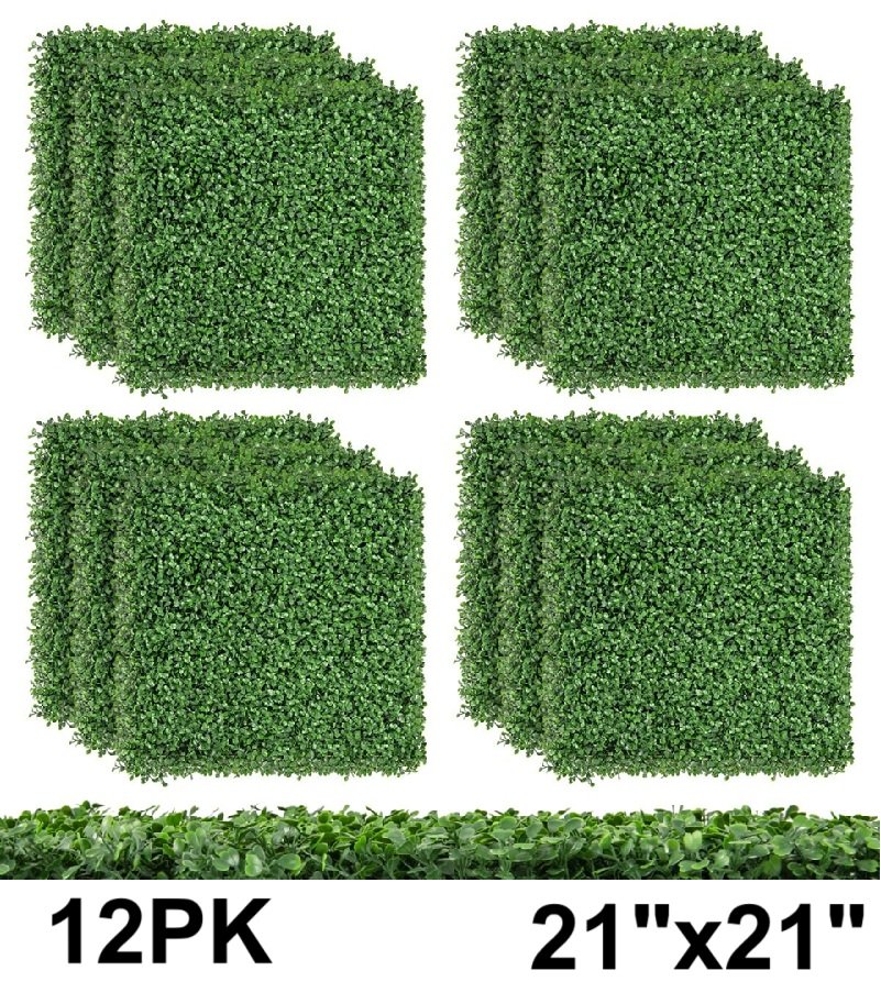 12PK COSWAY Artificial Grass Wall Panels - 21"X21" - GREEN (MODEL: HZ10251)