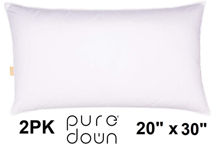 2PK DOWN FEATHER BEDDING LUXURY LARGE BED PILLOW - 20" x 30" - White/Black Piping
