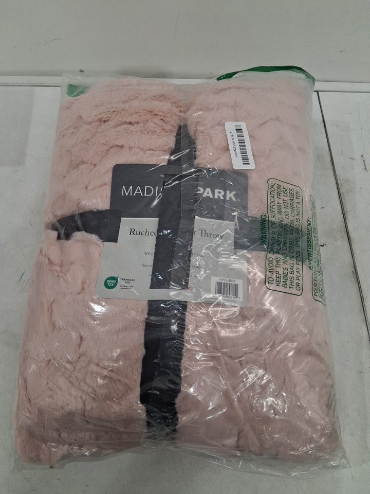 Madison Park Ruched Faux Fur Luxury Throw blanket - 50" x 60" - blush