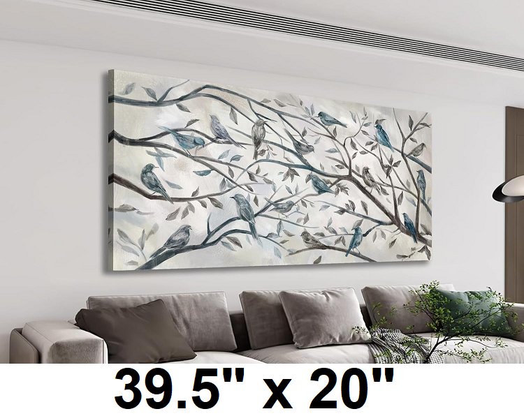 Modern Ready to Hang Landscape Bird Wall Art - 39.5" x 20" - grey