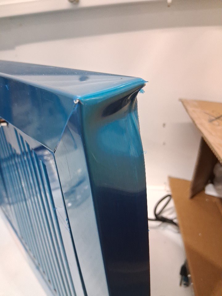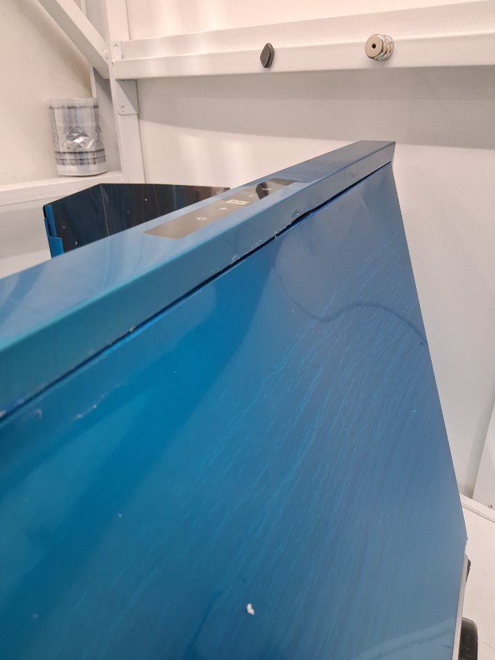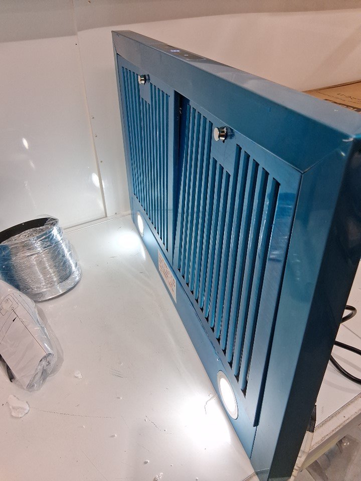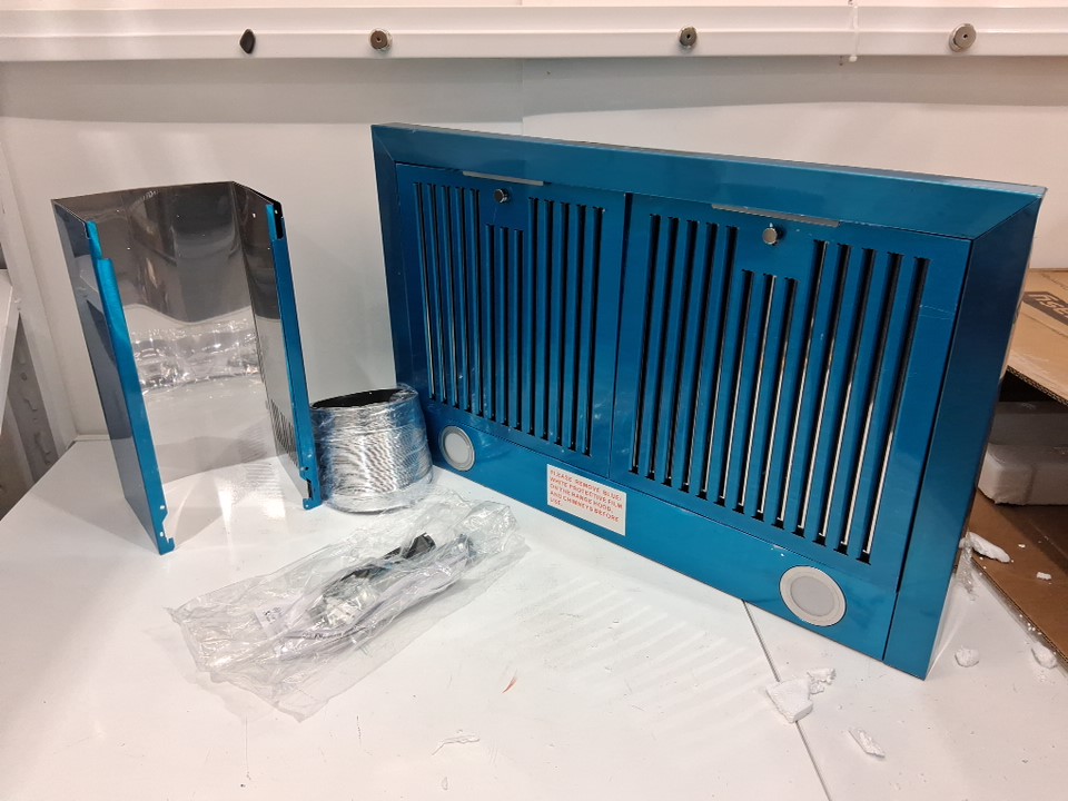 the item was damaged during shipping, the item has light dents and scratches on the item (some should only be on the protective film but others look like they went right through) the item was tested for power and is found to be working, the item grates are stuck in because they are bent and will need some TLC to bend back into position (please see photos)