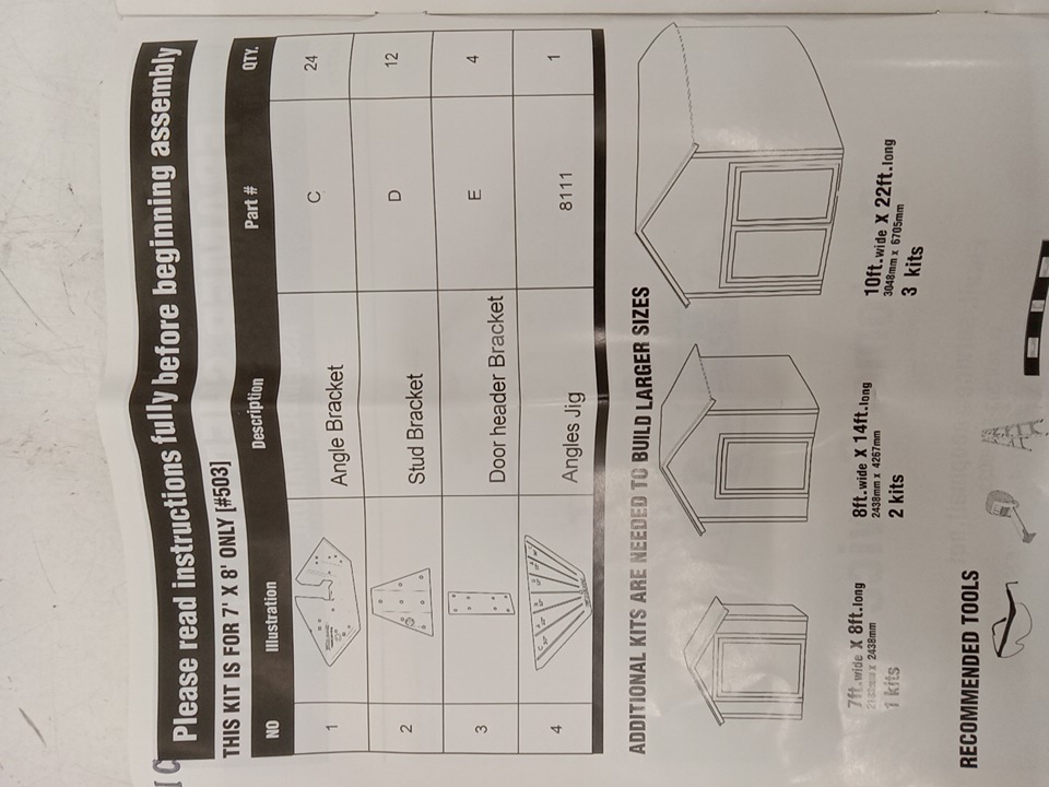 FRAMING KIT FOR shed with a peak roof design - 7FT X 8FT (MODEL: 70087)