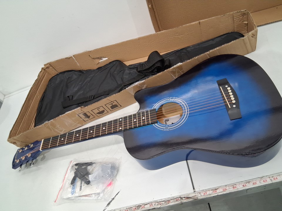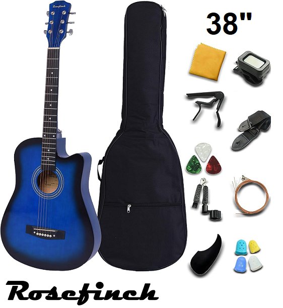 Rosefinch Acoustic Guitar Basswood beginner kit - 38" - BLUE - (Model: ‎AGT16Blue)
