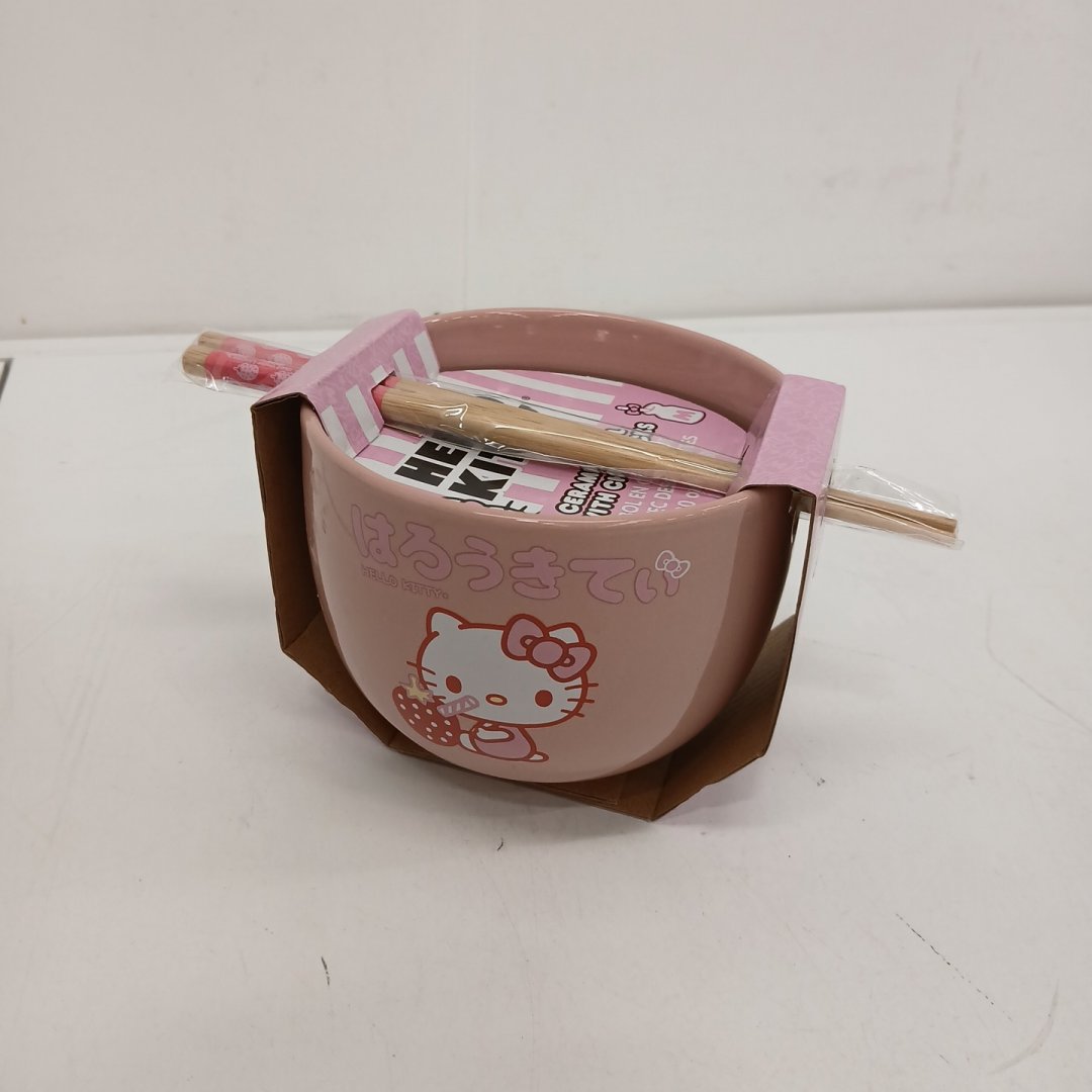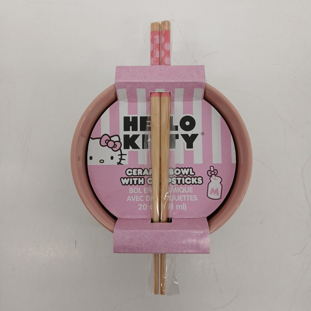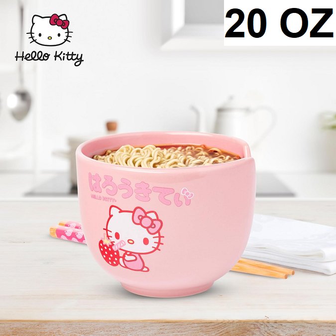 Silver Buffalo Hello Kitty Strawberry Milk 20 oz Ceramic Ramen Bowl with Chopsticks - Pink