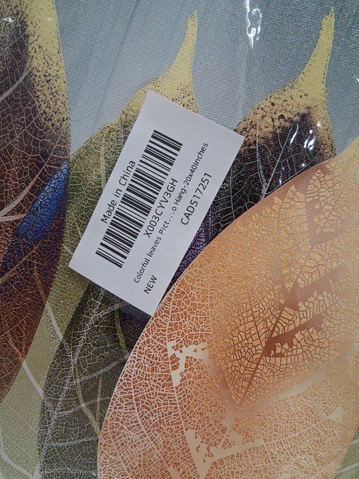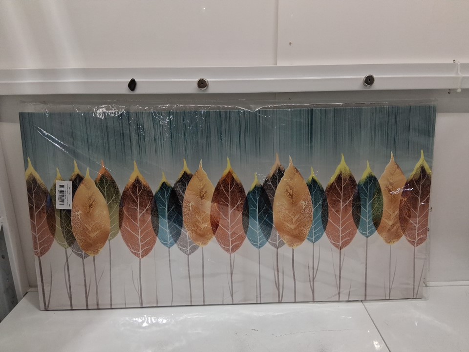 colour full fall leaves art wall mounted decorative canvas picture - 19.5" x 39" - blues / browns