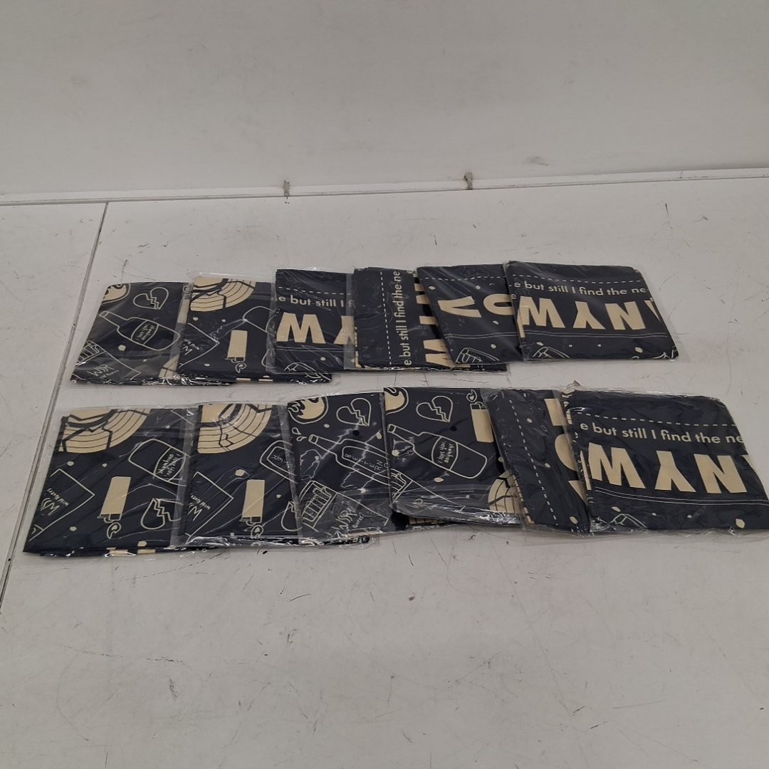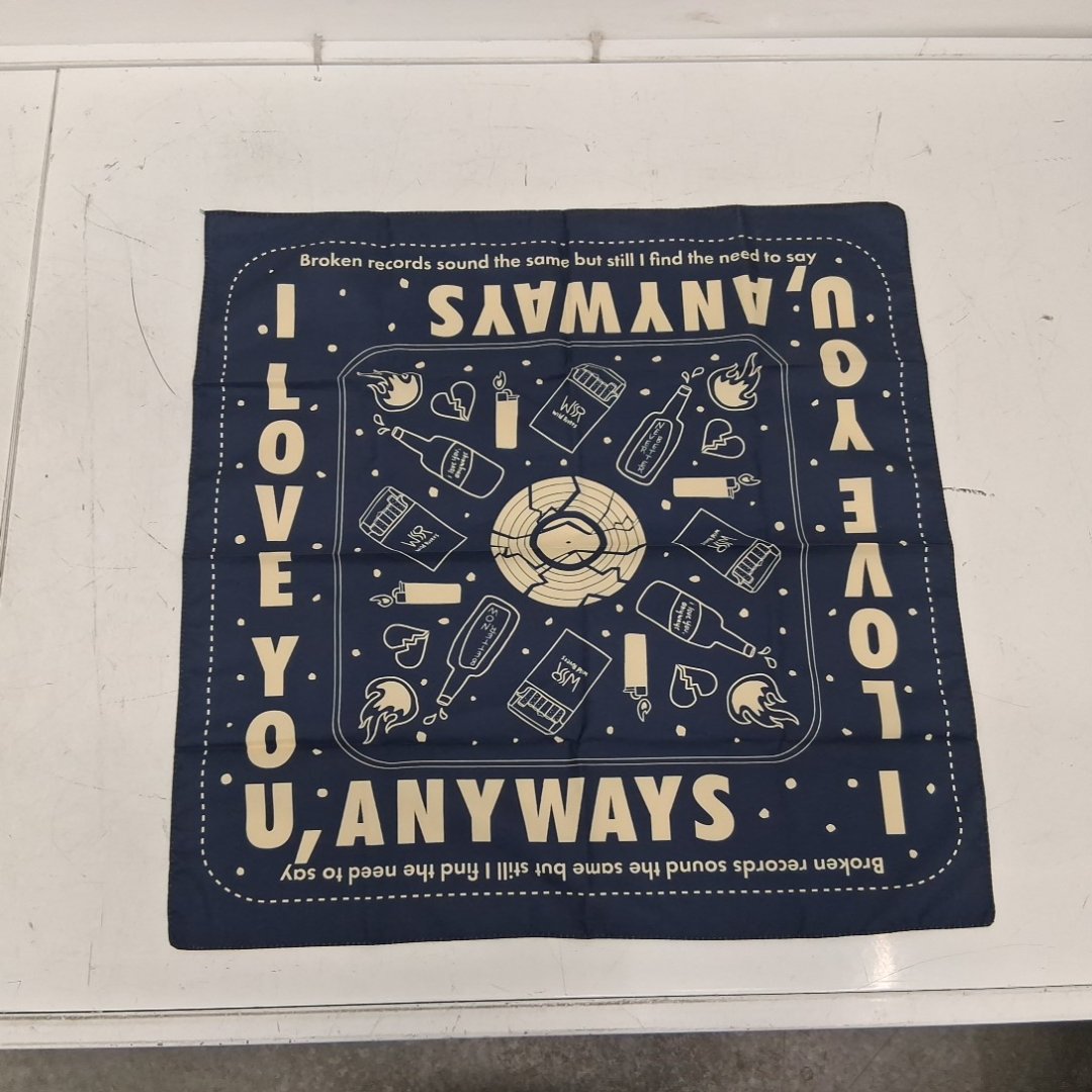 12PK "I LOVE YOU ANYWAYS" graphic printed bandana - 22" x 22" each - NAVY BLUE/cream