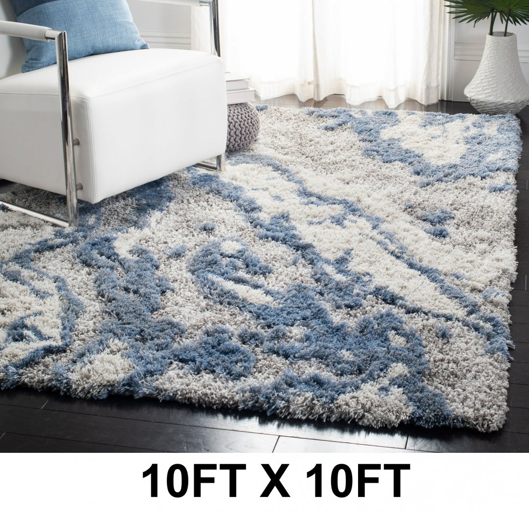 SAFAVIEH Horizon Konstantinos Abstract Shag Area Rug - 10ft X 10ft - Grey/Blue