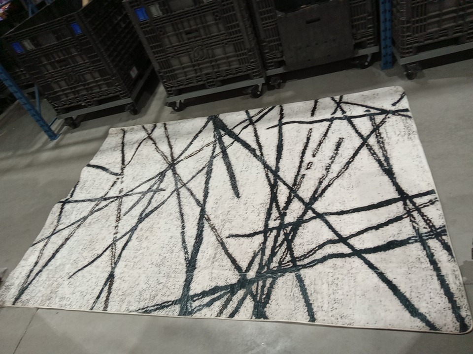 modern abstract geometric line patter area rug - 6ft 9" x 9ft 10" - white/black