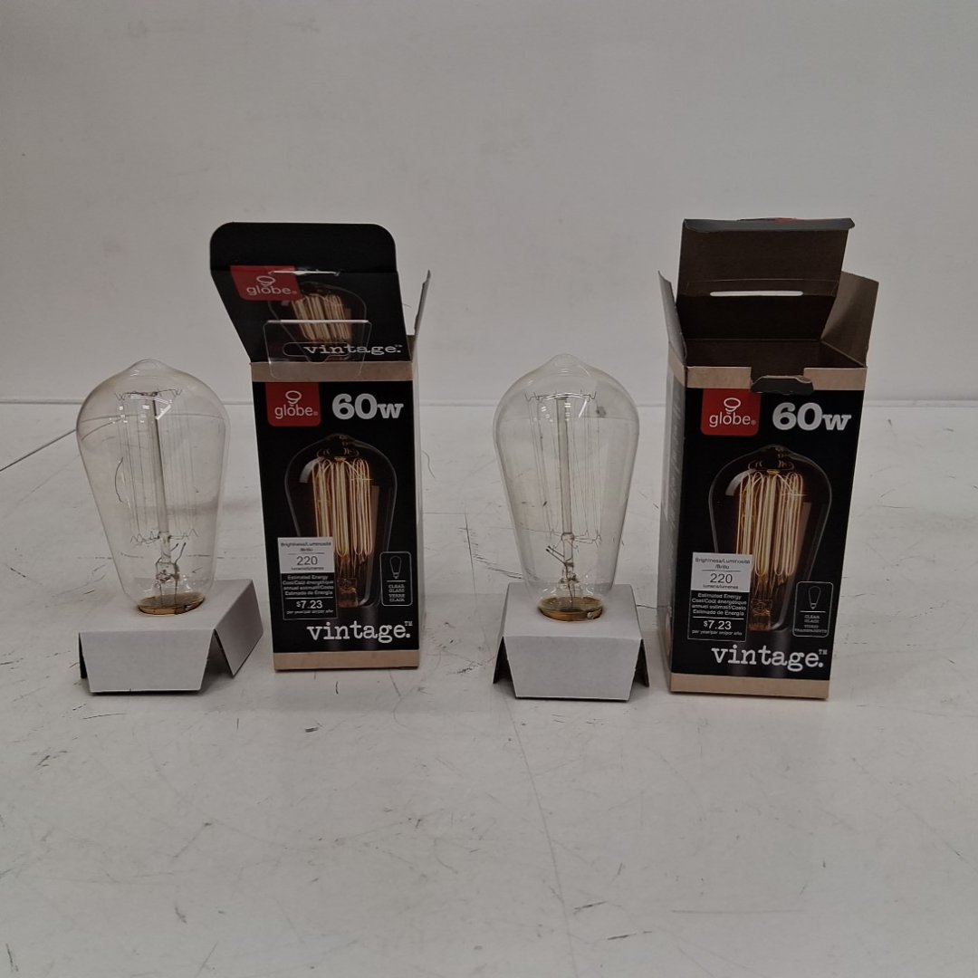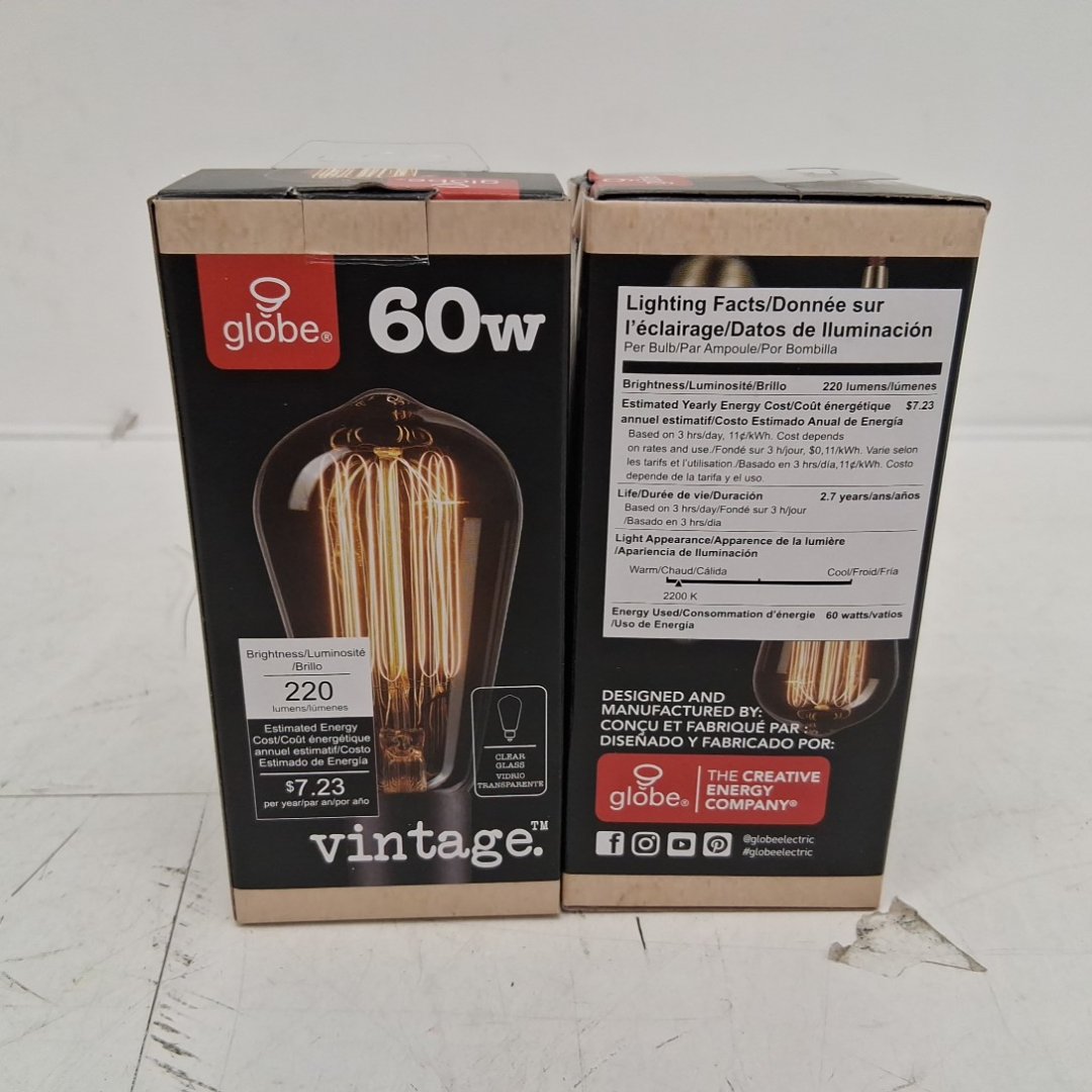 2PK GLOBE VINTAGE CLEAR GLASS 60W LIGHT BULB STANDARD BASE - 220LM - 2200K (MODEL: 01321)