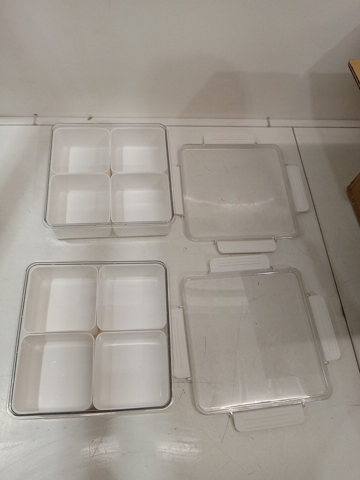 Scuffs/scratches on the middle lids from previous use. Some of it can likely be cleaned.