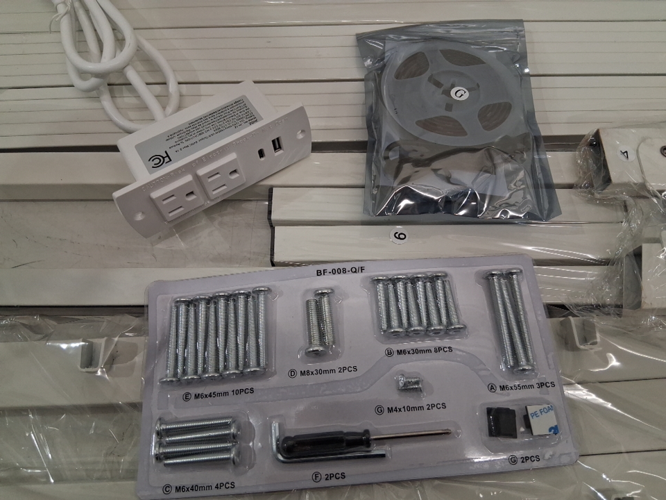 COLLAREDEAGLE METAL PLATFORM BEDFRAME WITH LED LIGHTS AND CHARGING STATION, WHITE (MODEL: BF008-WH-F)