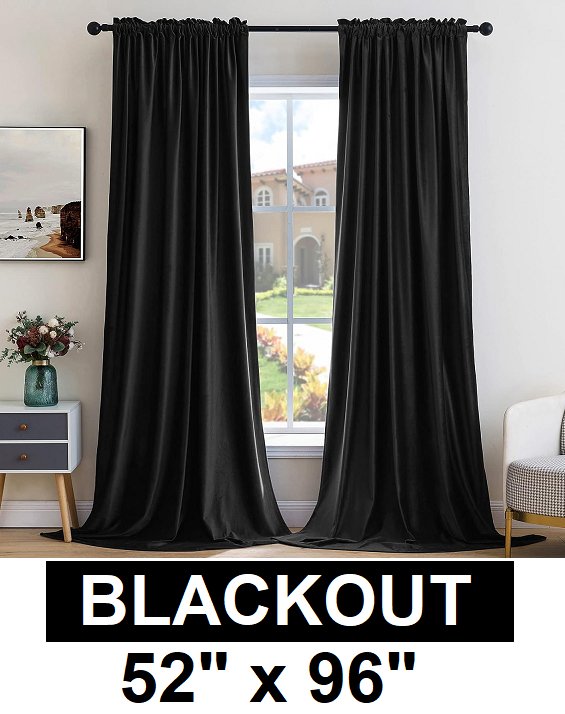 (2 PANELS) MIULEE VELVET ROD POCKET BLACKOUT CURTAINS - 52" X 96" - BLACK