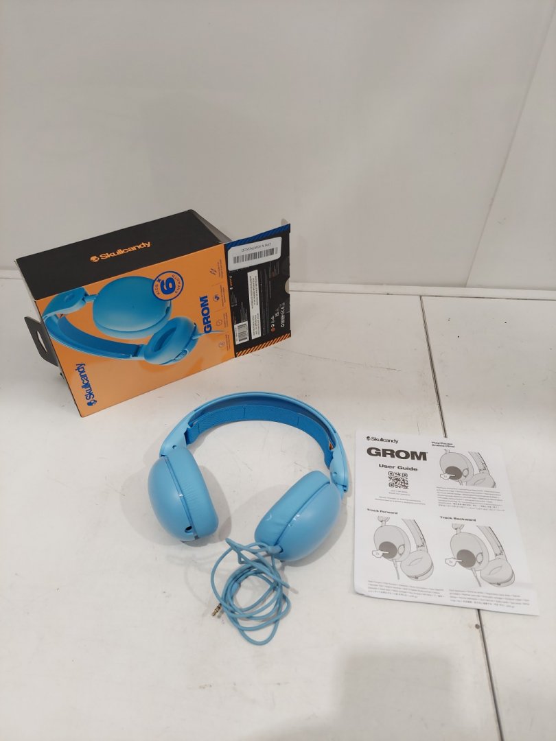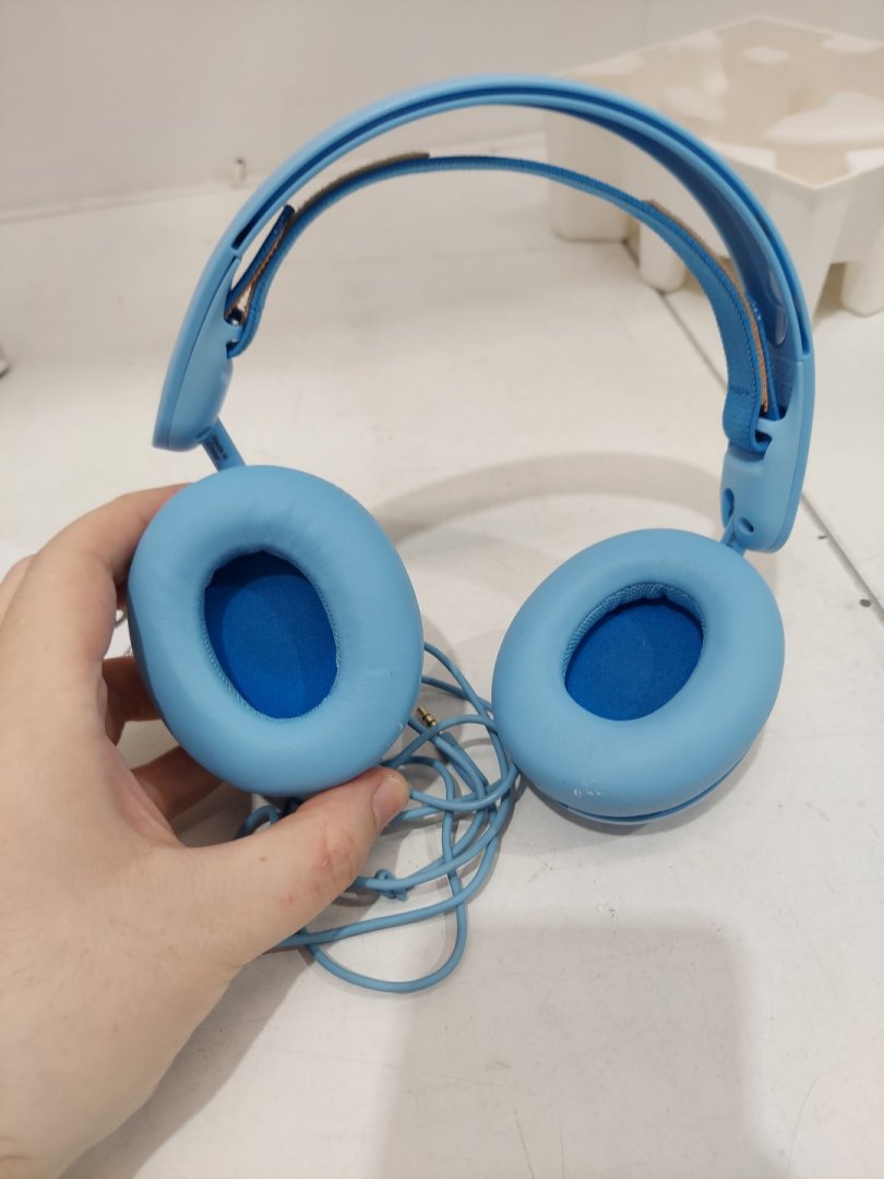 Item arrived with minor cosmetic blemishes on the ear cushions that may be signs of light use. nothing significant and nothing that should effect use. tested for power and sound.