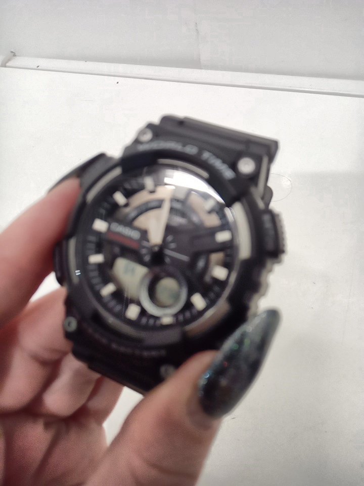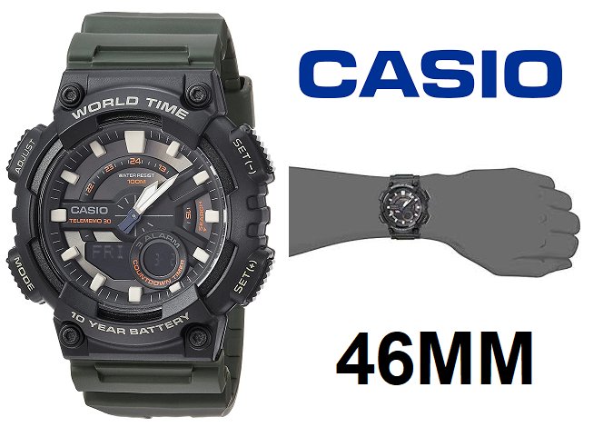CASIO TELEMEMO 30 WORLD TIME RESIN STRAP WATCH - 43MM - GREEN (AEQ-110W-3AVCF)
