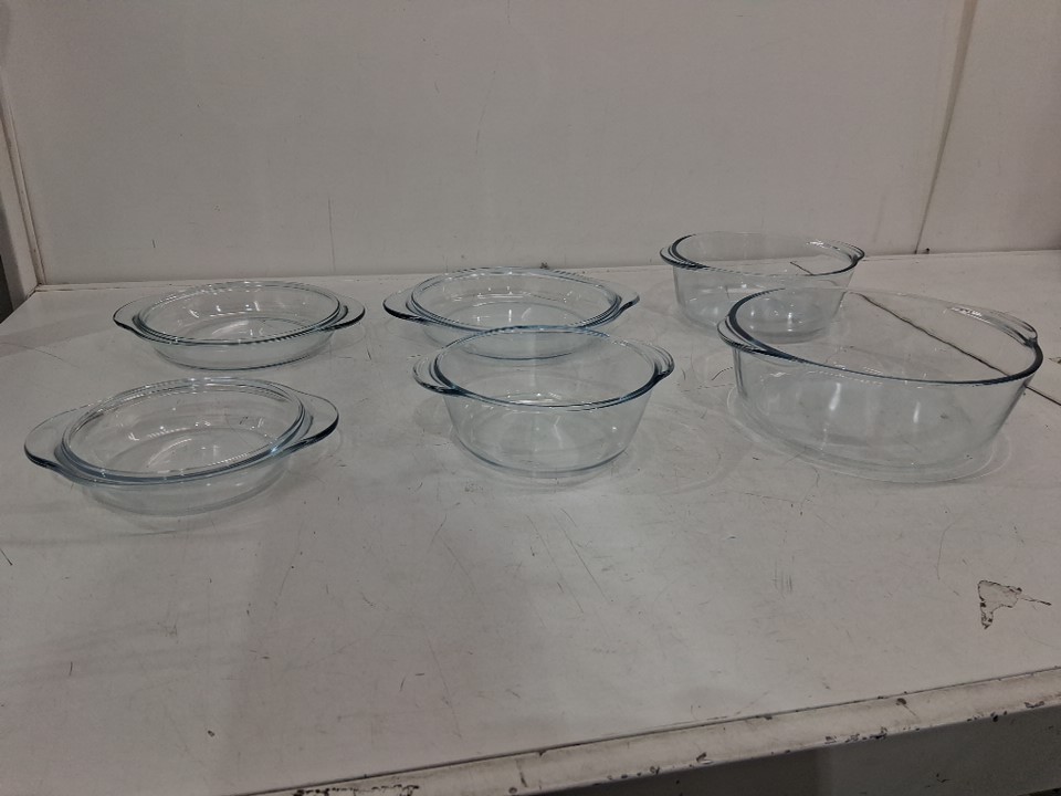 6PC UMS Borosilicate Glass Casserole with Lids - 25.6 oz, 48 oz and 67 oz - Clear (Model: UMS15902)
