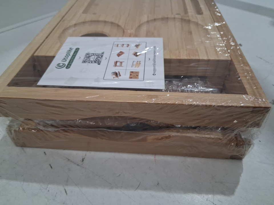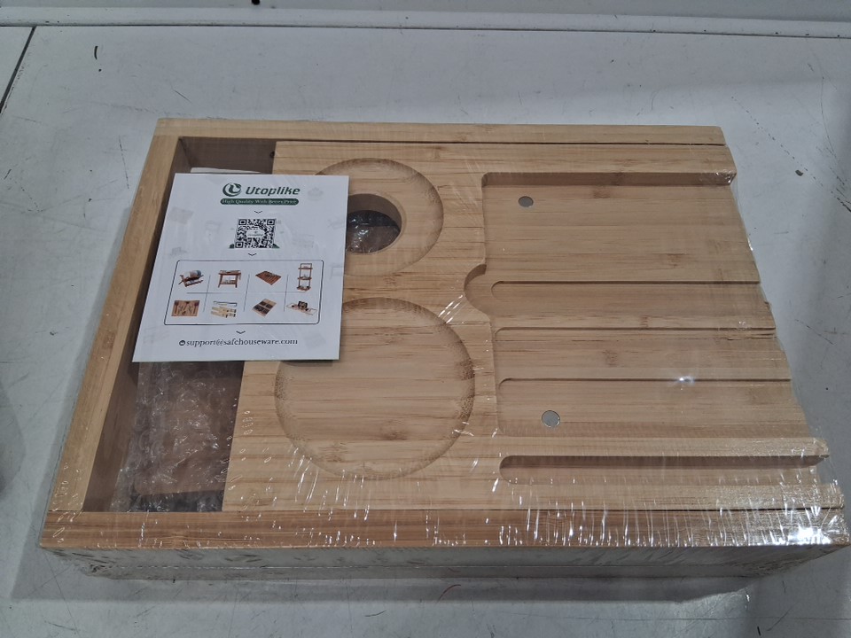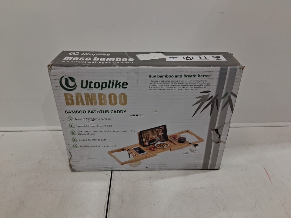 UTOPLIKE BATHTUB CADDY TRAY WITH ADJUSTABLE ARMS HOLDS BOOKS/TABLETS/CELL - 27" - 41" - NATURAL BAMBOO brown