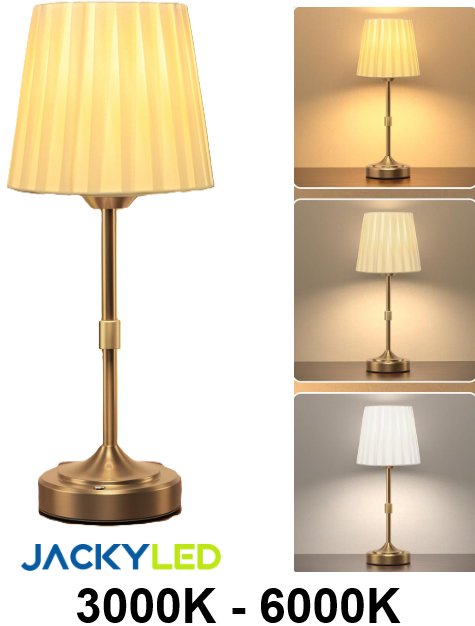 JackyLed Cordless table lamp with 3 light colour selections - 3000k to 6000k - Gold/White (Model: JKTL01
