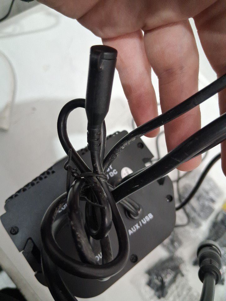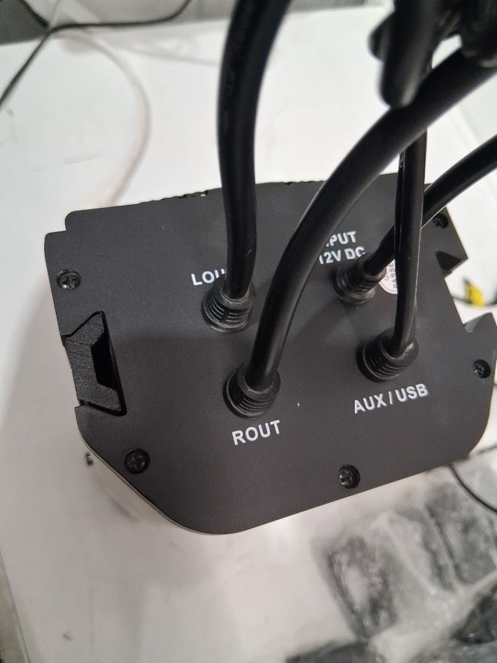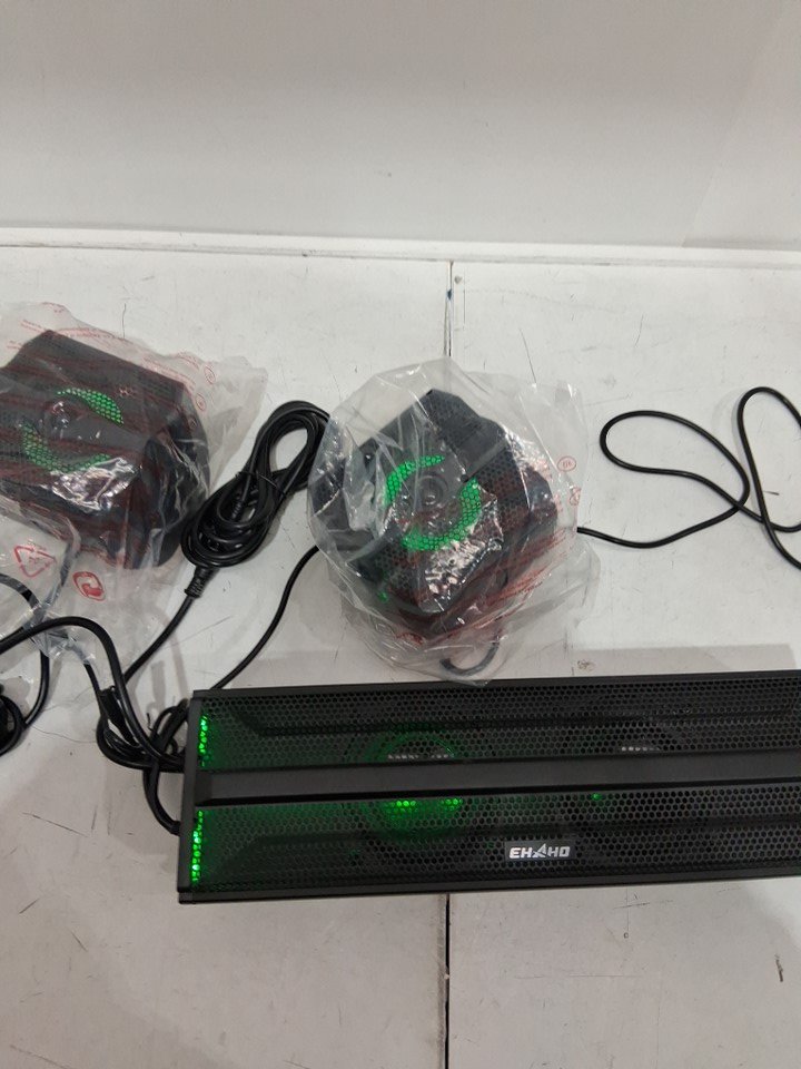 Tested for power and Bluetooth, working. Signes of light use, some dirt/dust on cables/main speaker.