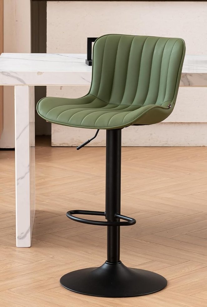 KIDOL & SHELLDER Modern leather adjustable Bar Stool - 16.1" x 42.1" - OLIVE GREEN
