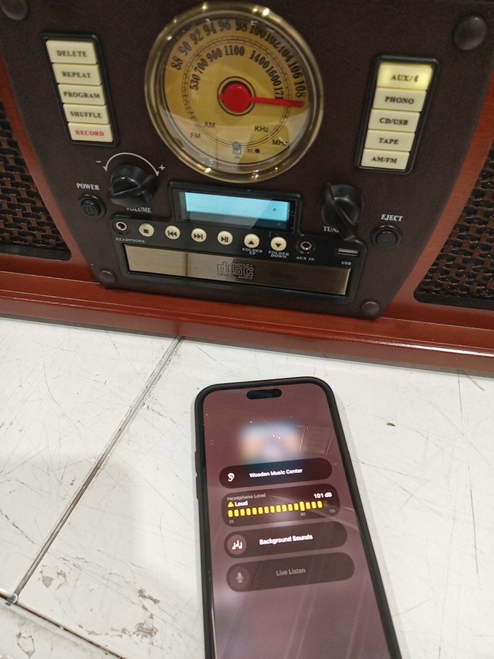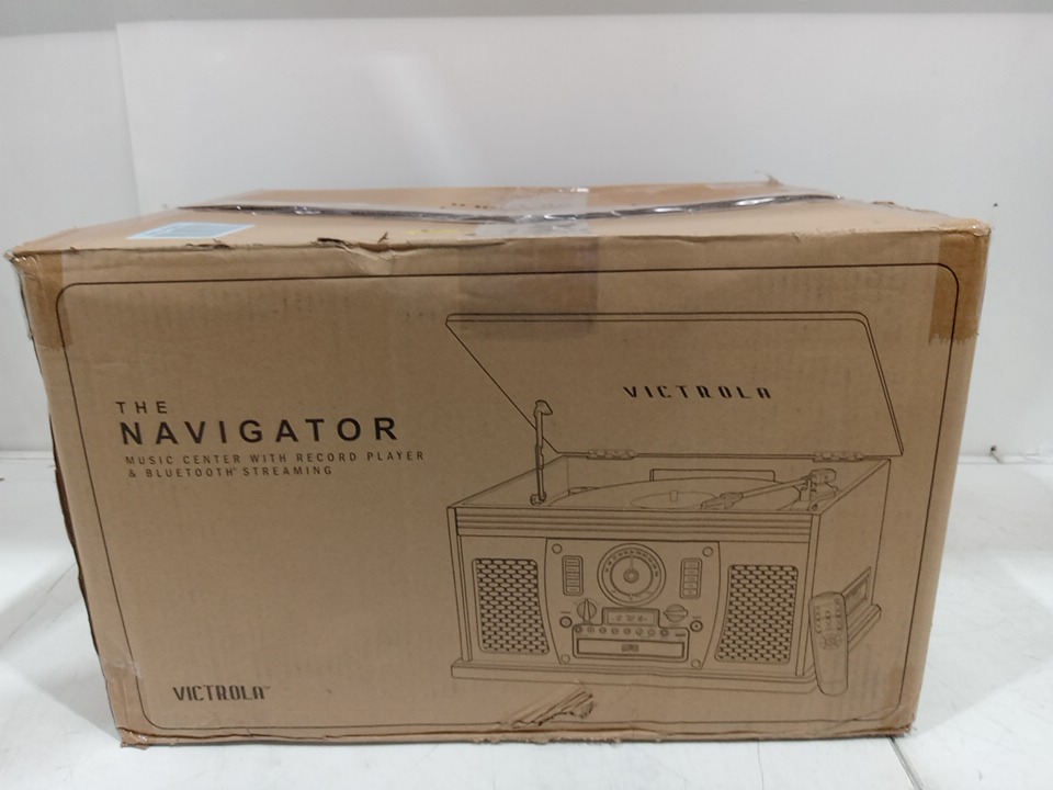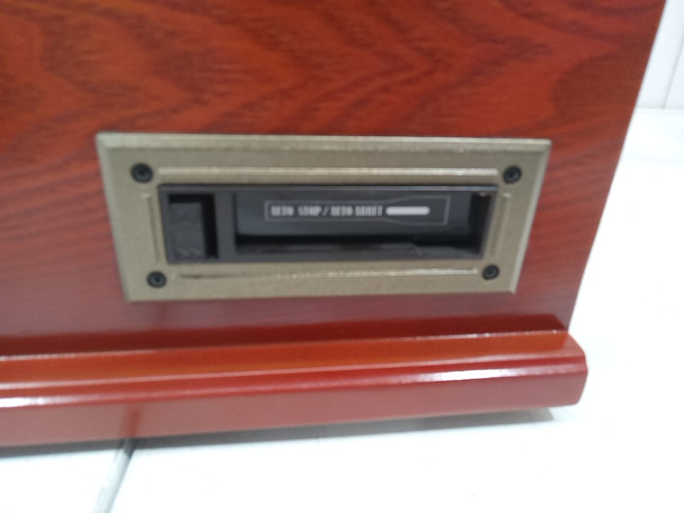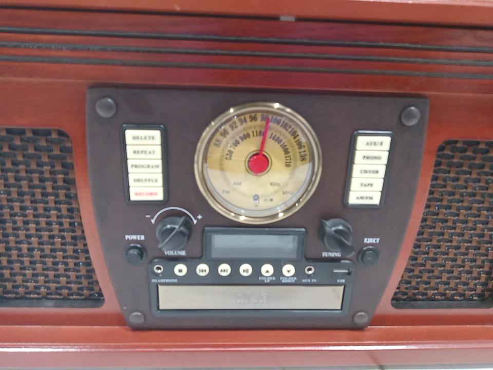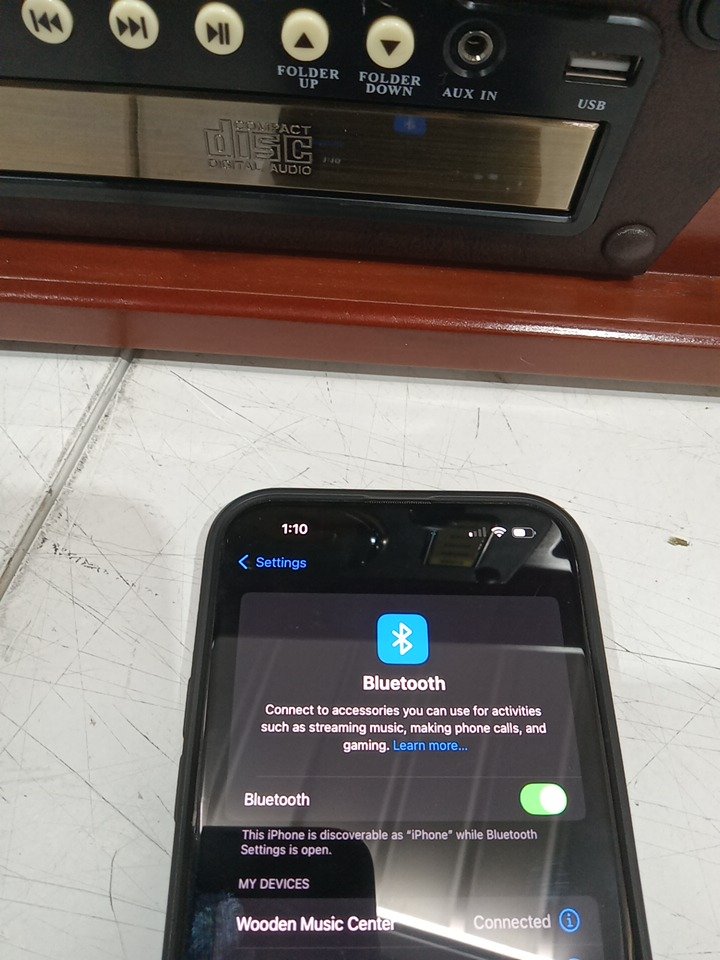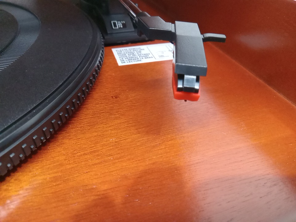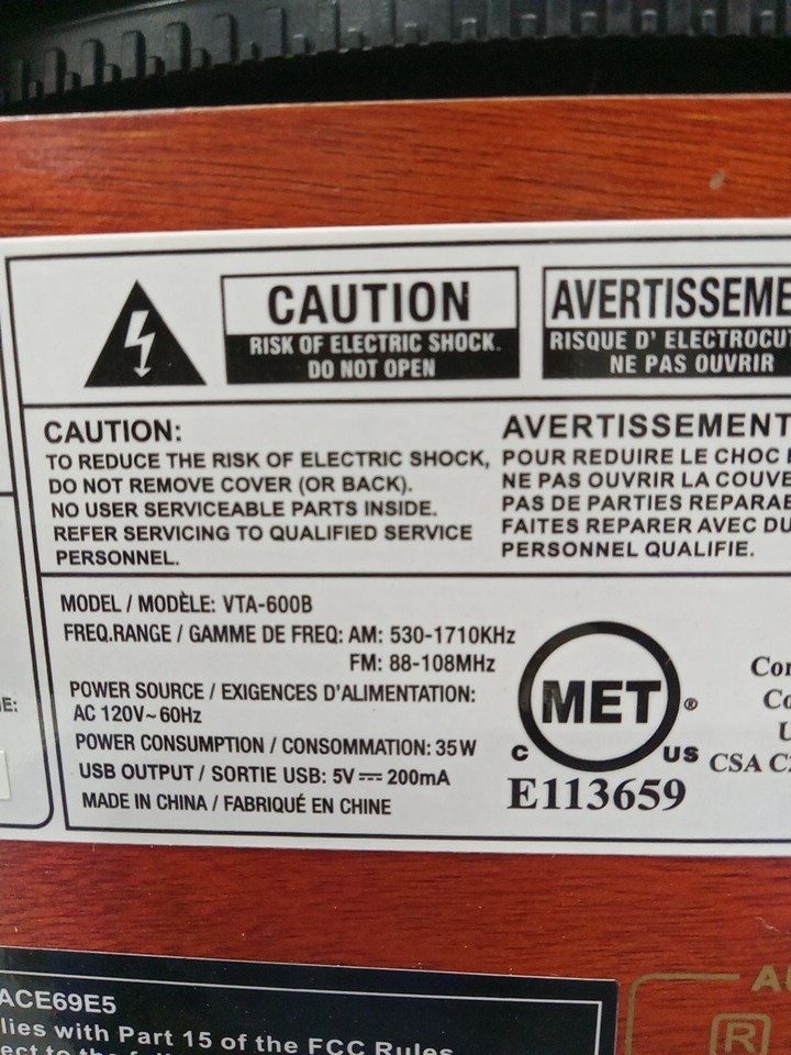Please note that the the vinyl player turntable is loose but it still functions. There are minor scratch/scuff marks on the top due to shipping. Tested for power and functionality. (Please see photos)
