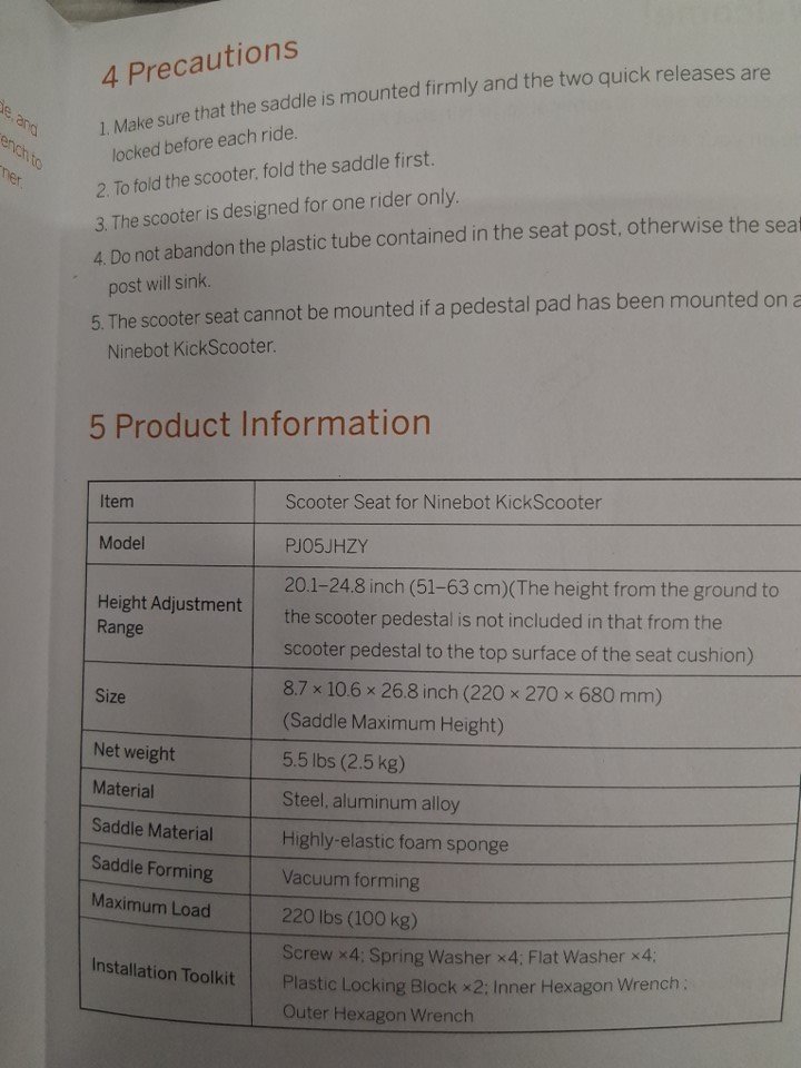 Ninebot Adjustable Seat Saddle Compatible With Segway ES1/ES2/ES4 Kick Scooters - Black - (MODEL: PJ05JHZY)