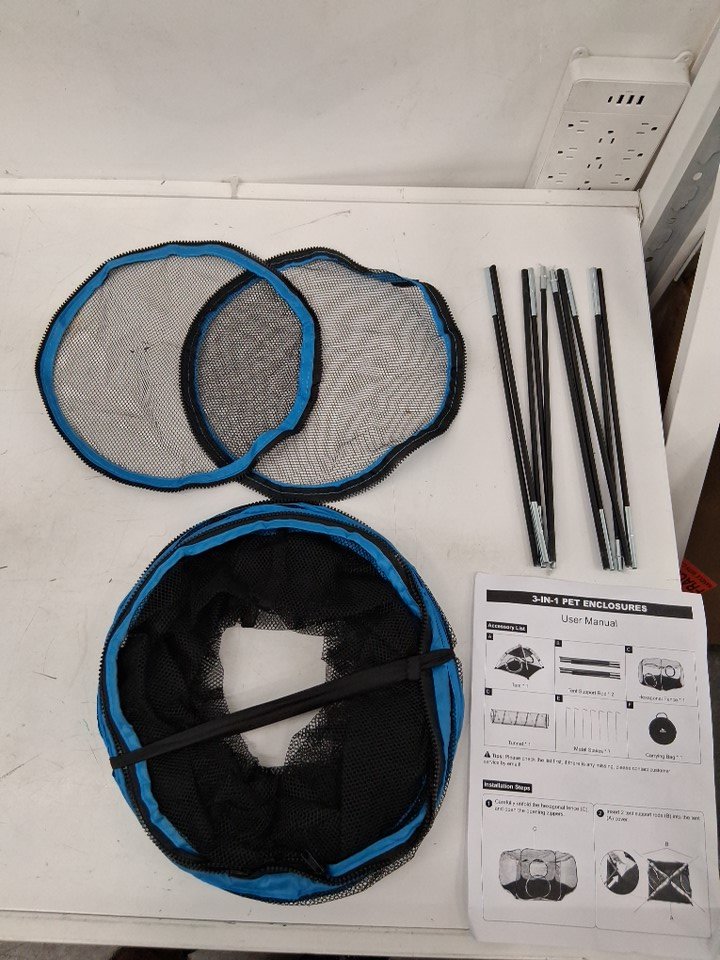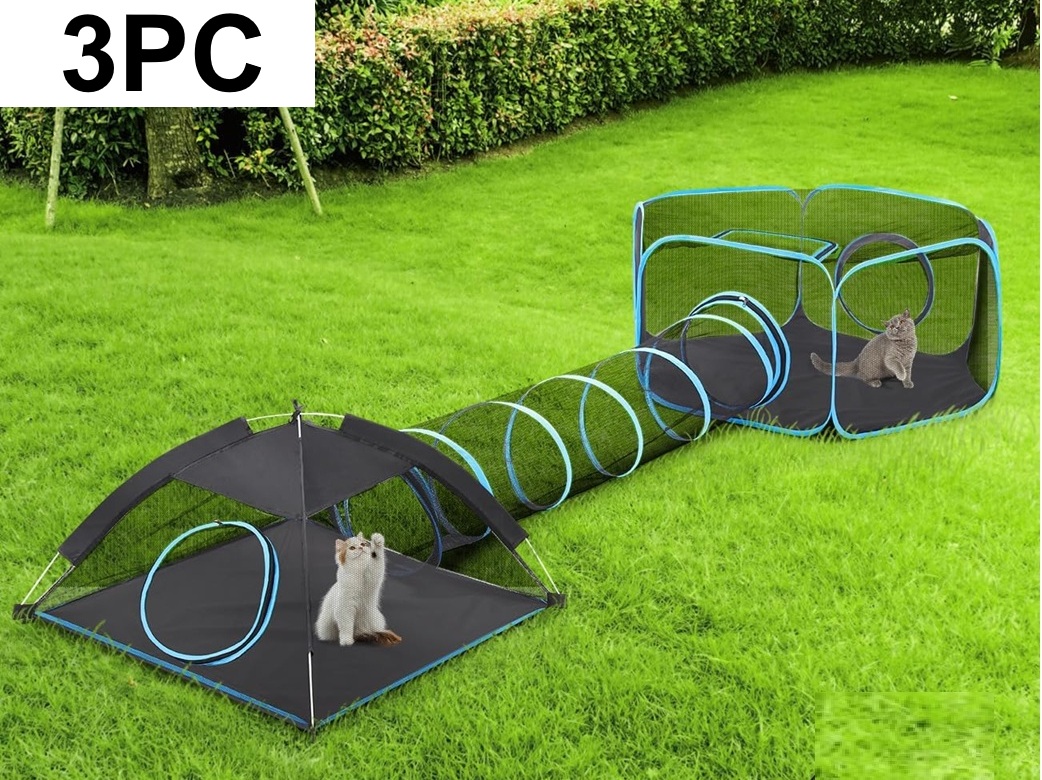 3PC Pawaboo Outdoor 3-IN-1 Cat Enclosure - 102" x 20" - Light Blue/Black