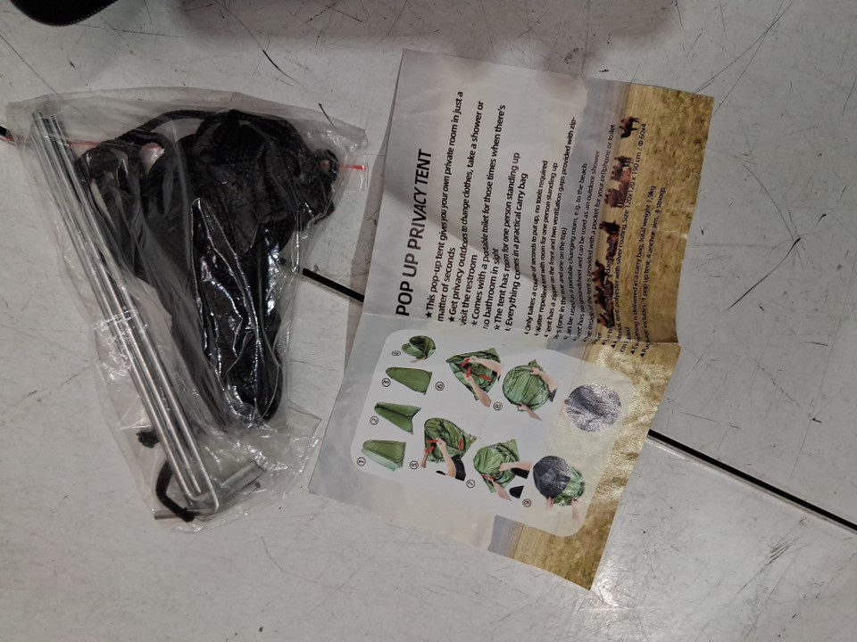 please note the outside bag is distressed and the tent has some dirt, indicating previous use. see photos.
