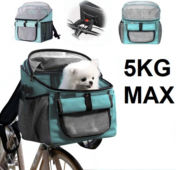 Pet Front Mount backpack Carrier/Bicycle Basket for Small Dogs and Cats - 5KG max - Teal green/blue