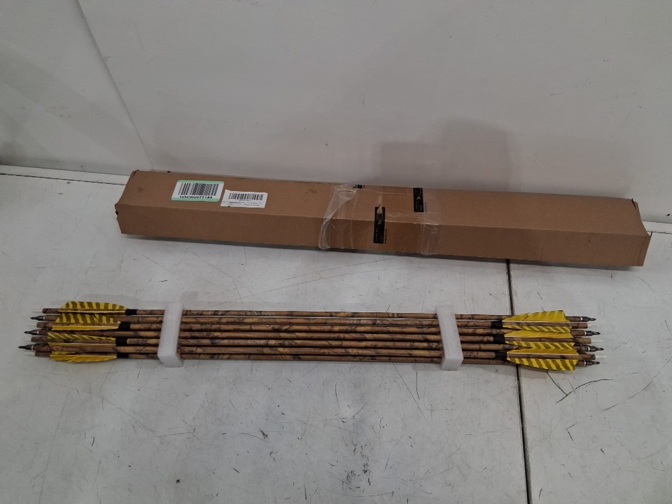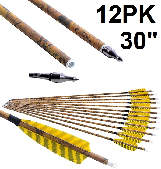 12pk ZSHJGJR Archery Carbon Arrows Hunting Arrows with 4” Turkey Feather Removable Tips - 30” - brown camo
