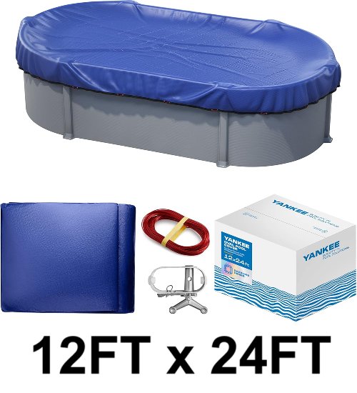 yankee sapphire edition oval winter pool cover for above ground pools - 12ft x 24ft - blue (model:ypc-ov-1224)