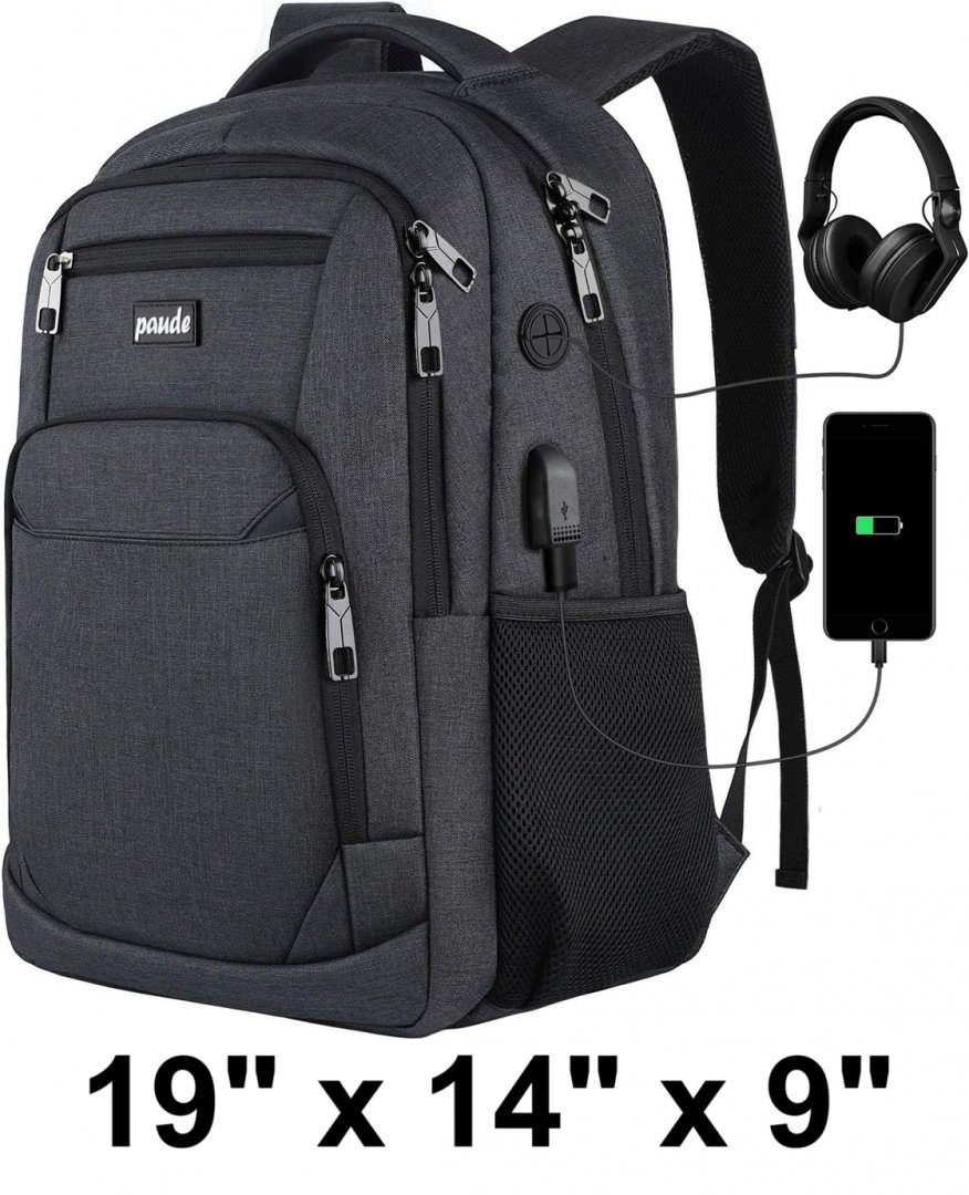 Paude Laptop Backpack With USB Charging Port - 19" x 14" x 9" - Grey/Black