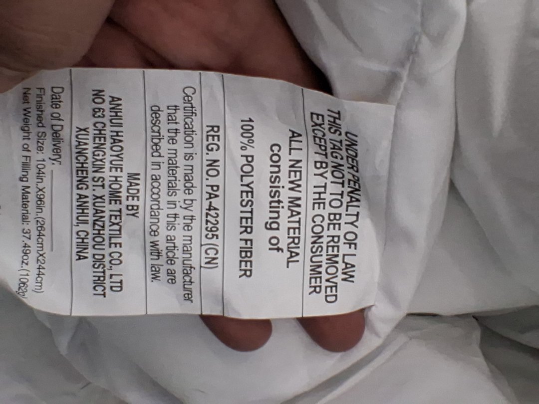 Duvet has some light dirt and dust showing it being previously used, but easily washable