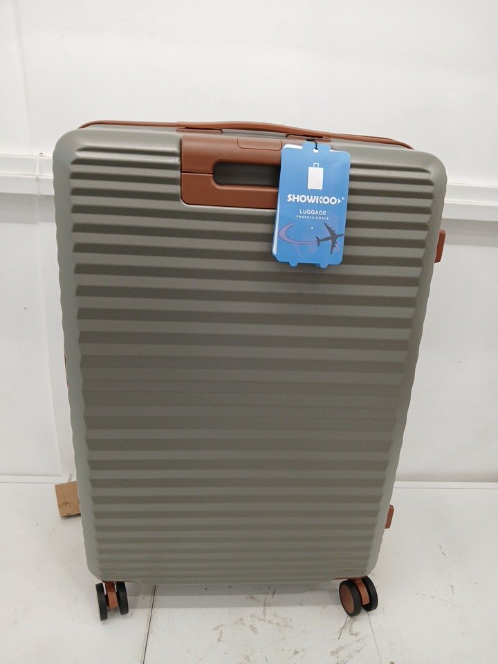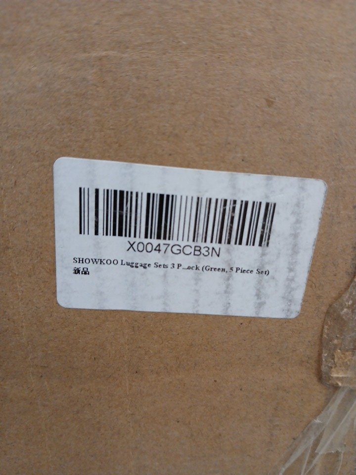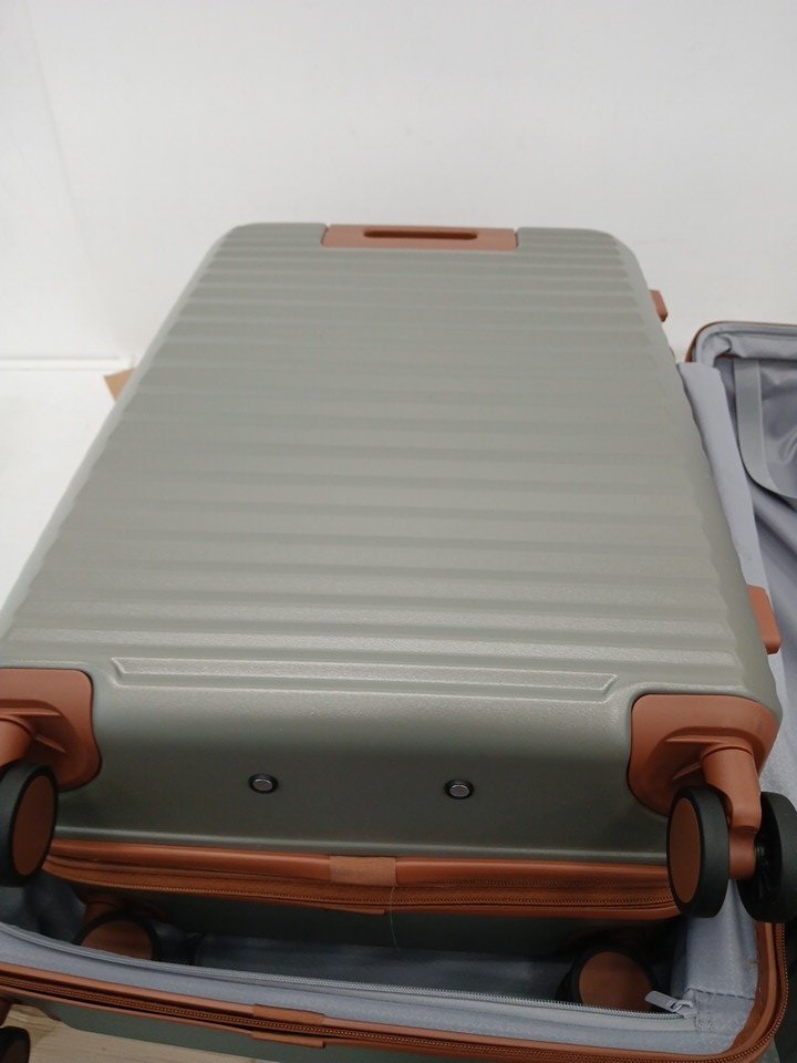 5pc Showkoo Hard shell Expandable Suitcase set with Double Spinner Wheels, TSA Lock and toiletry and duffle bag - 20"/24"/28" - green/brown