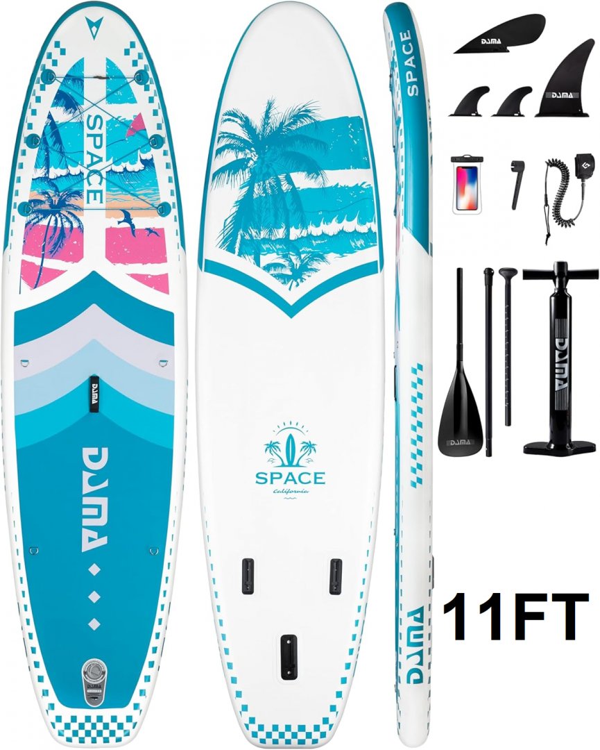 DAMA INFLATABLE STAND UP PADDLEBOARD WITH DOUBLE ACTION PUMP AND TRAVEL BAG - 11FT - BLUE/WHITE