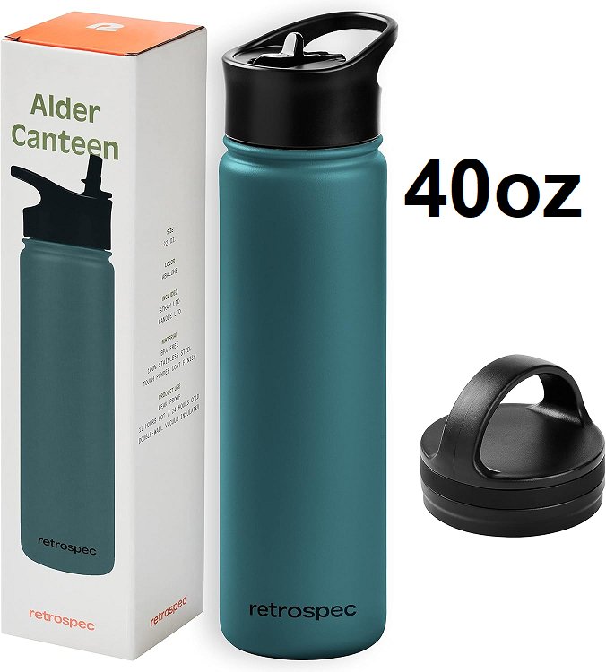 Retrospec Alder Insulated stainless steel Water Bottle with Straw Lid and Handle Cap - 40oz - superior blue