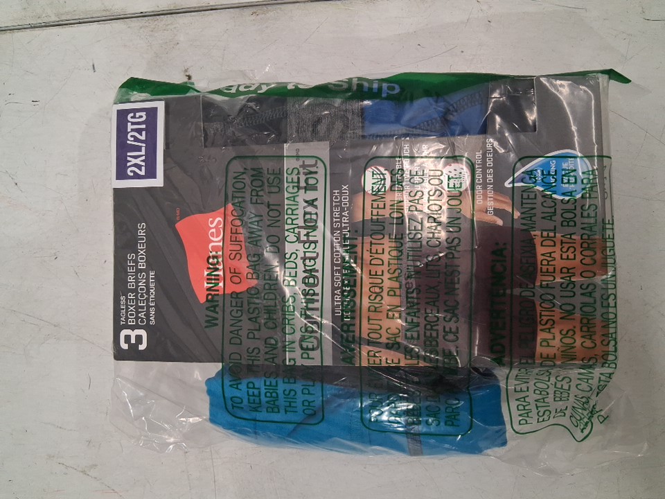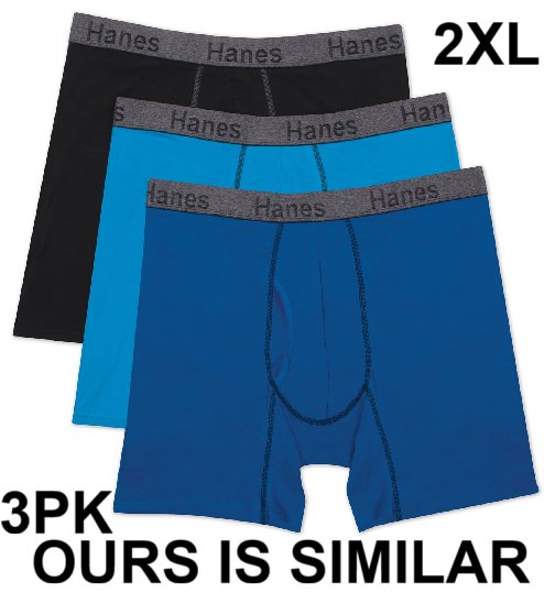 3PK MEN'S HANES TOTAL SUPPORT POUCH COMFORT FLEX FIT TAGLESS BOXER BRIEFS - 2XL - BLACK/BLUE