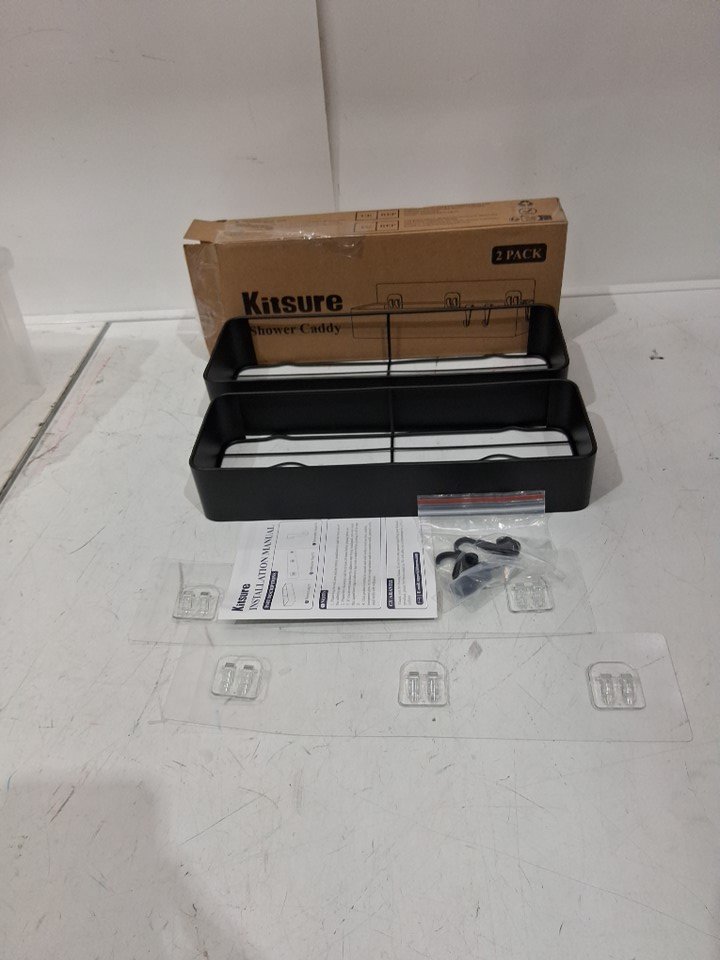 2PK KITSURE SELF ADHESIVE RUSTPROOF SHOWER CADDYS - 2" X 4" X 11.5" - black