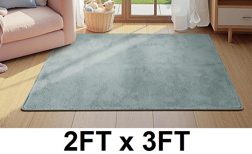 jinchan Solid Non-Slip Washable Plush Area Rug - 2FT x 3ft - slate blue