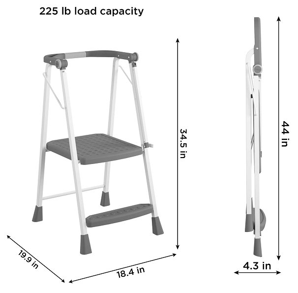 COSCO 2-STEP FOLDING STEP STOOL, SLIM SPACE SAVER LADDER - WHITE/GREY (MODEL: 11349WHG1E MASTER)