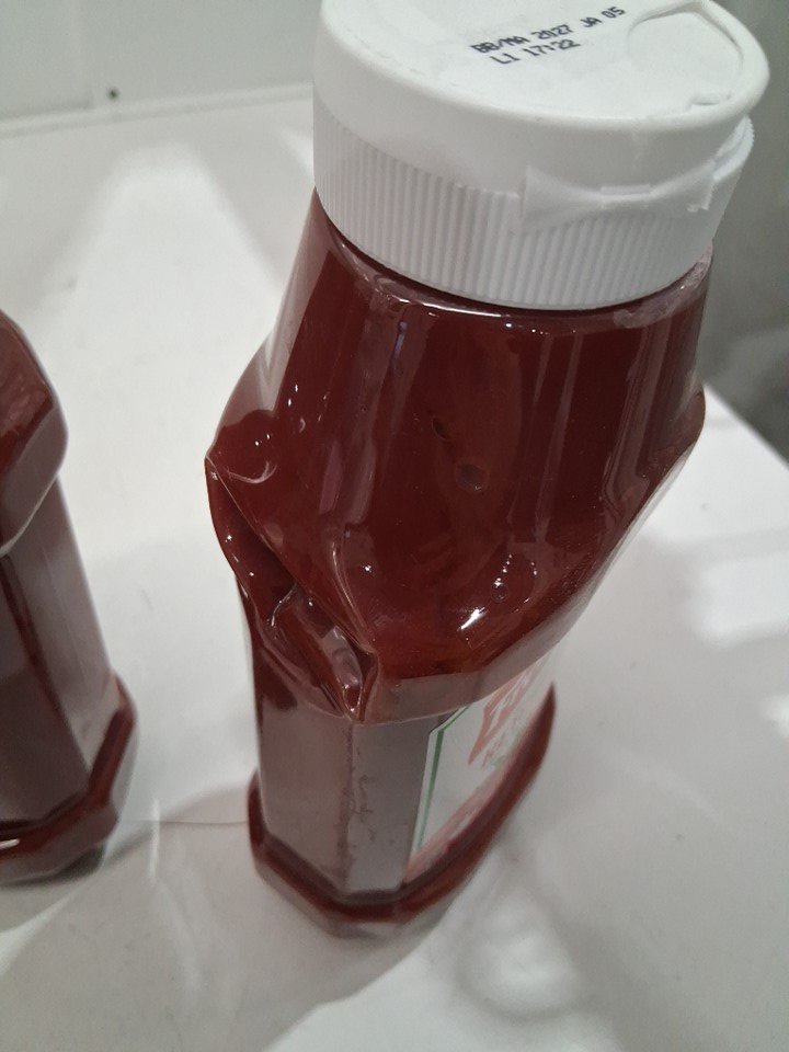 One of the bottles the lid is broken but still closes and a dent on the side, see photos.