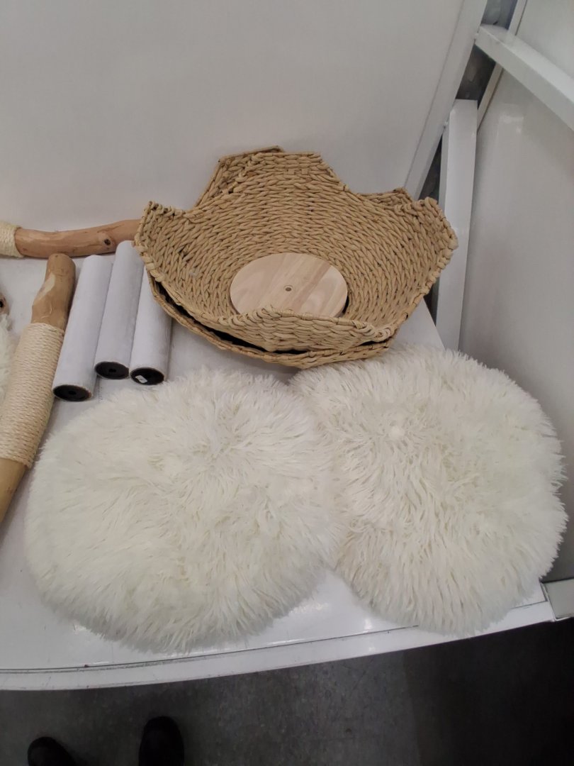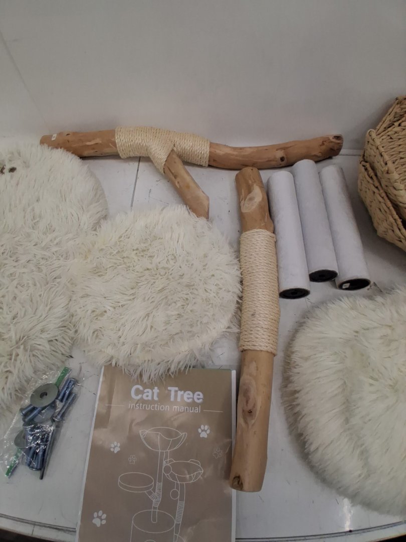 erommy natural wood cat condo tower tree with hand-woven baskets - 46.8" x 23.6" x 17.7" - white