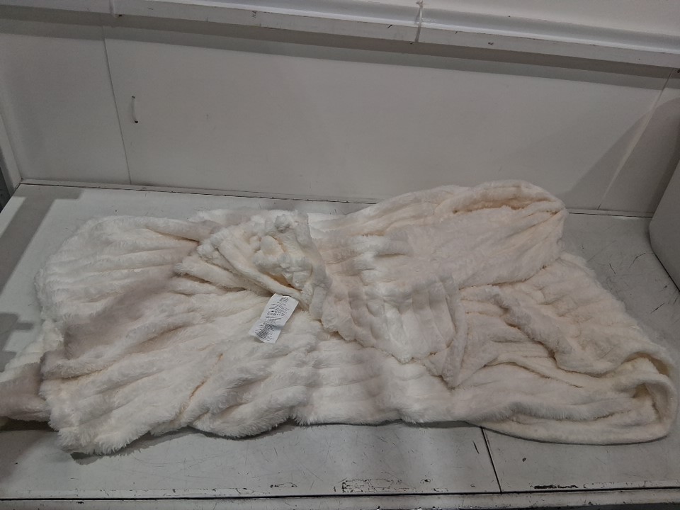 BEDSURE CARVED FLEECE THROW BLANKET WITH SCALLOPED EDGE - 50"X60" - WHITE
