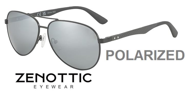 ZENOTTIC Polarized Aviator Sunglasses - Black Frame/Silver Lens