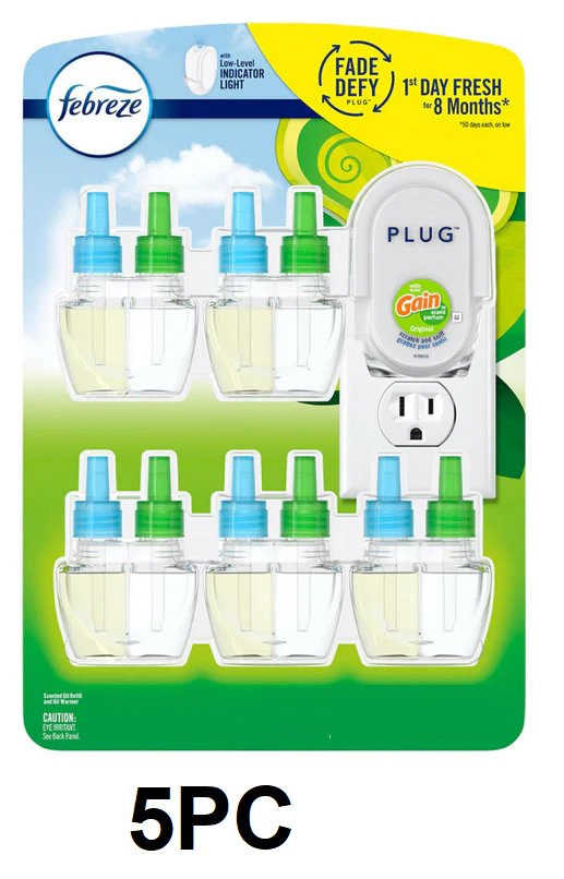 5pc FEBREEZE PLUG IN AIR FRESHENER - 4 REFILLS & 1 WARMER - gain scent