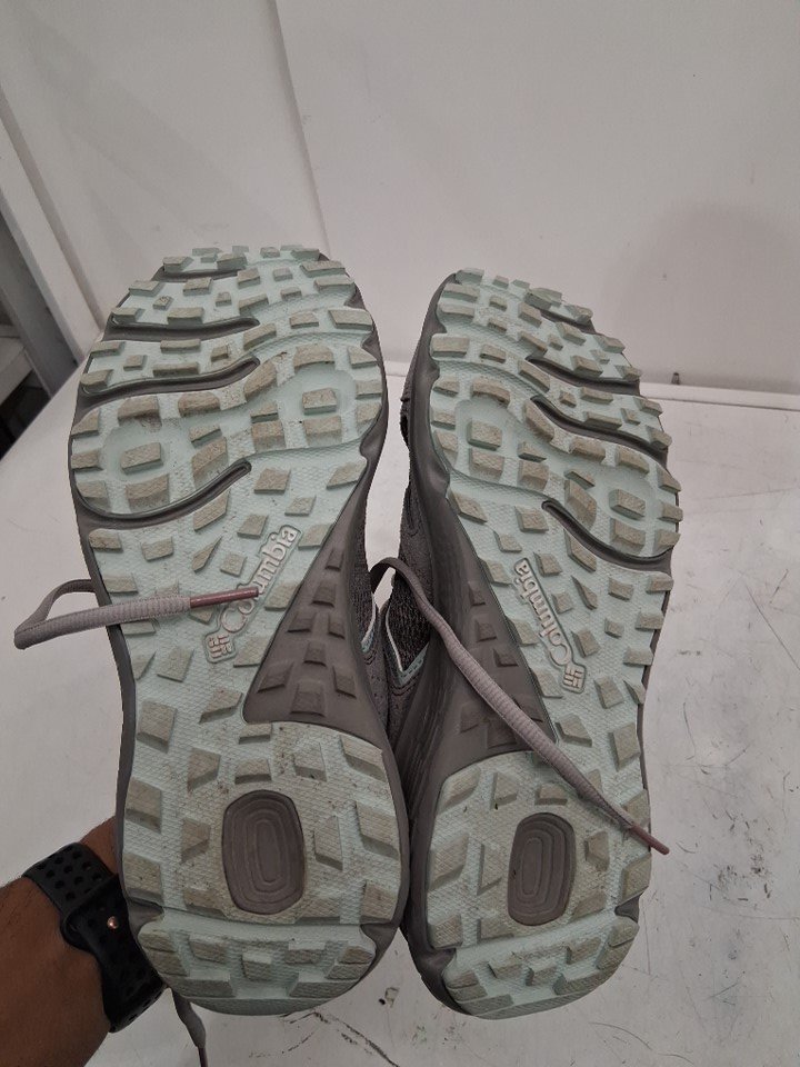 The bottom of the shoes has light dust/dirt indicates previous use or demo model.