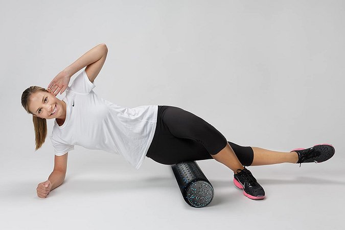 LuxFit 36" Foam Roller, Speckled Foam Rollers for Muscles- black/ blue