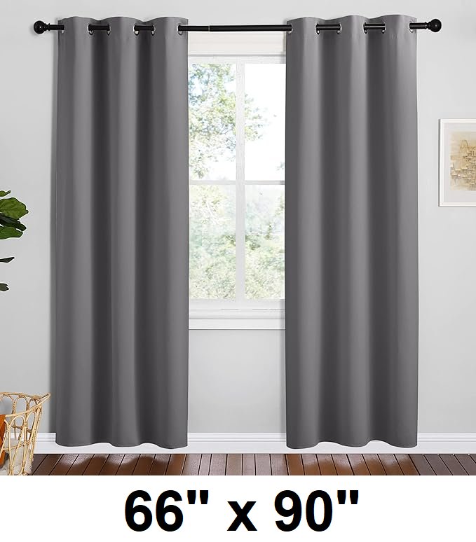 (2 panel) nicetown blackout grommet top curtains - 66" x 90" - grey