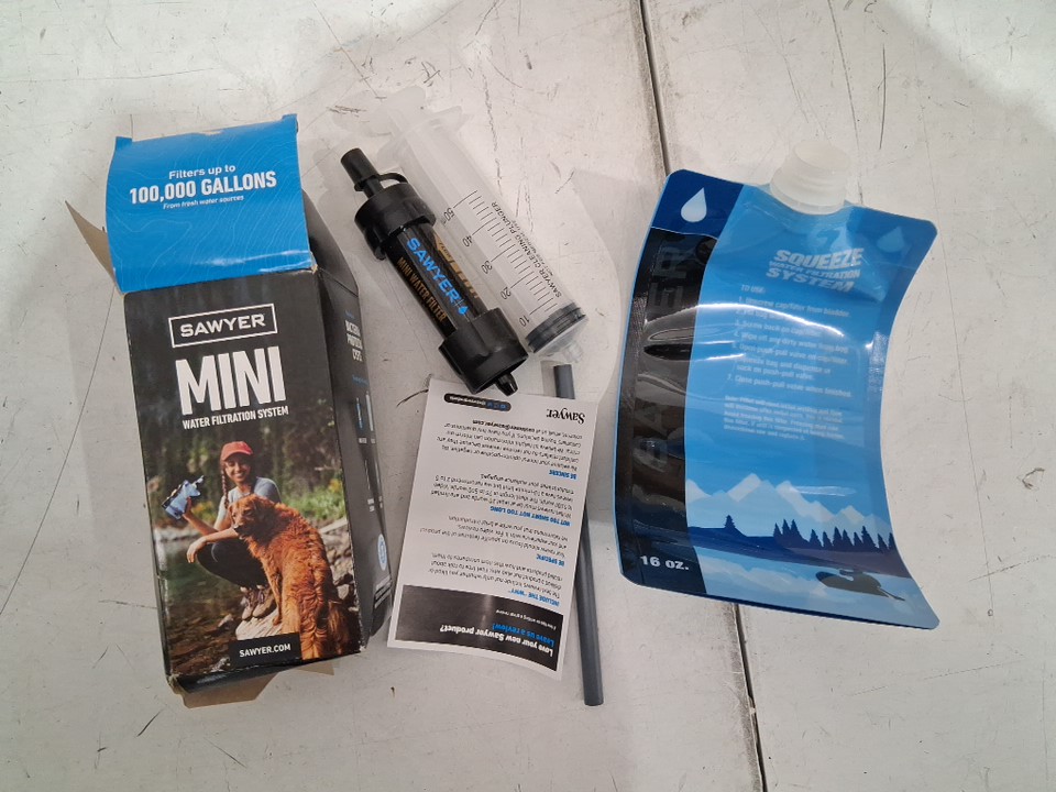 SAWYER MINI WATER FILTRATION SYSTEM - FILTERS UP TO 100,000 GALLONS FROM FRESH WATER RESOURCES